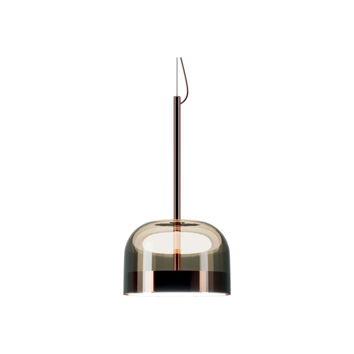 The Equatore is an immaterial light. It offers the opposite of what you might expect from a traditional lamp, which has a light source located at the centre of the lampshade. The Equatore pendant has a lampshade that is paradoxically and suggestively empty! Its diffuser disc, which contains the LED light source, is placed beneath the lampshade. The invisible light disc is hidden by a metallic strip adorning the lampshade’s base. The diffuser disc is illuminated on both sides, so the light is directed both downwards and upwards where it shines within the lampshade. The superb blown glass bell fills up, as if by magic, with a luminous substance that appears to come from nowhere and illuminates without revealing the light source.