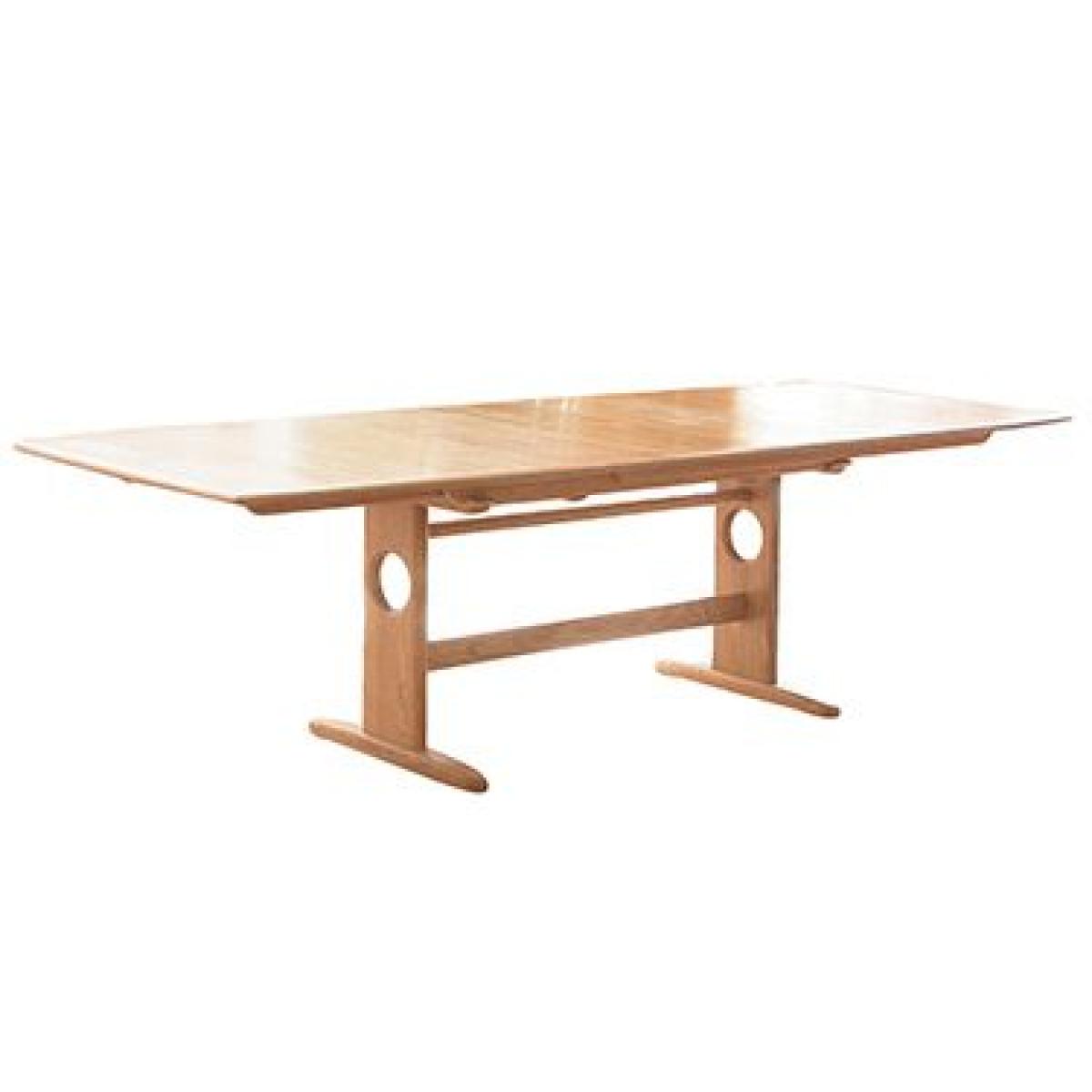 The large extending Ercol Windsor pedestal table boasts generous leg room thanks to its stunning pedestal shape. Seating up to 10 people when its fully extended, this Ercol Windsor dining table provides a stylish and practical dining solution. Dimensions: W160cm - 252cm x D102cm x H73cm Simple self assembly