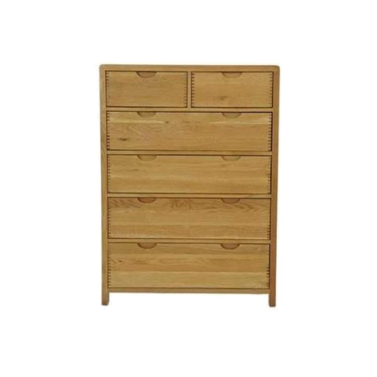 The 6 drawer tall wide Ercol Bosco chest of drawers provides your bedroom with plenty of storage space thanks to its generous 6 drawers. This stunning Ercol of drawers features the signature Bosco curved finger joints, creating a beautiful feature for your bedroom. The addition of curved recessed drawer handles also injects an elegant styling. Finished in clear matt lacquer ensures the beautiful oak is protected and allows for the natural beauty of the wood to be showcased. Dimensions: W90cm x D45cm x H124cm Ercol Product Code 1363. Solid oak construction and available in a clear matt finish. Simple self assembly