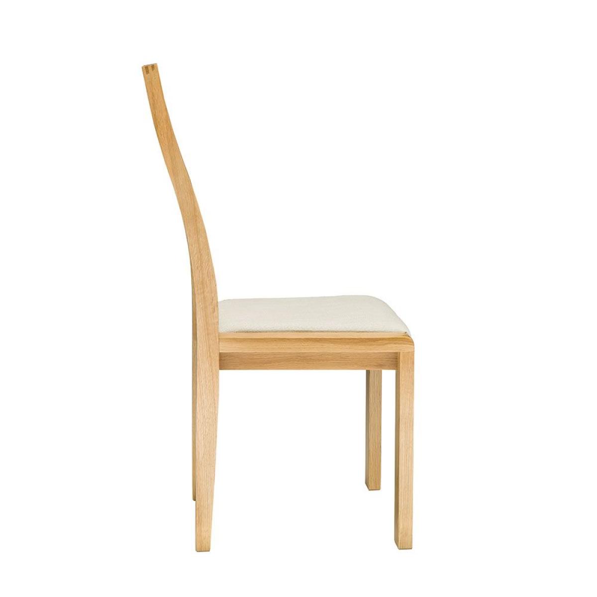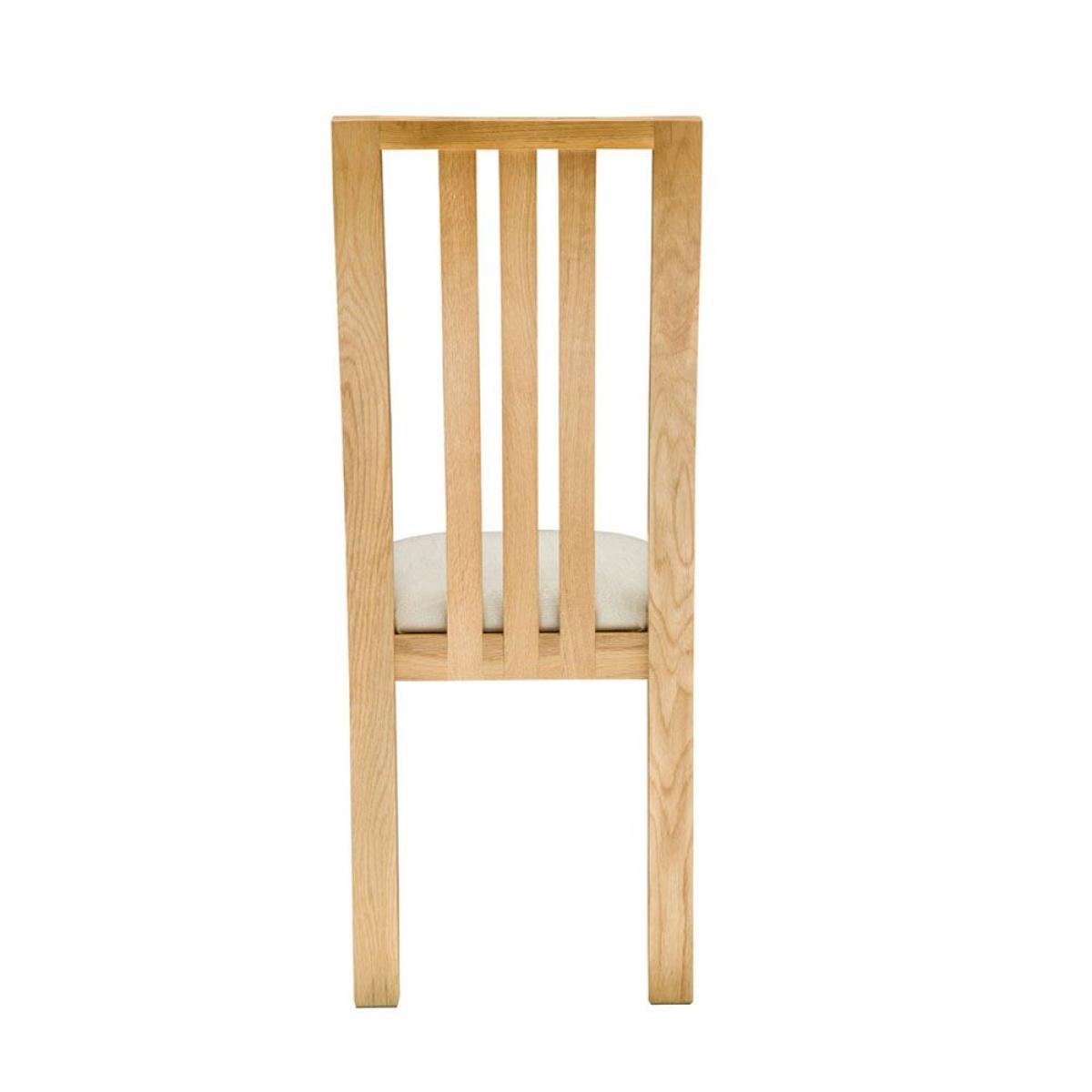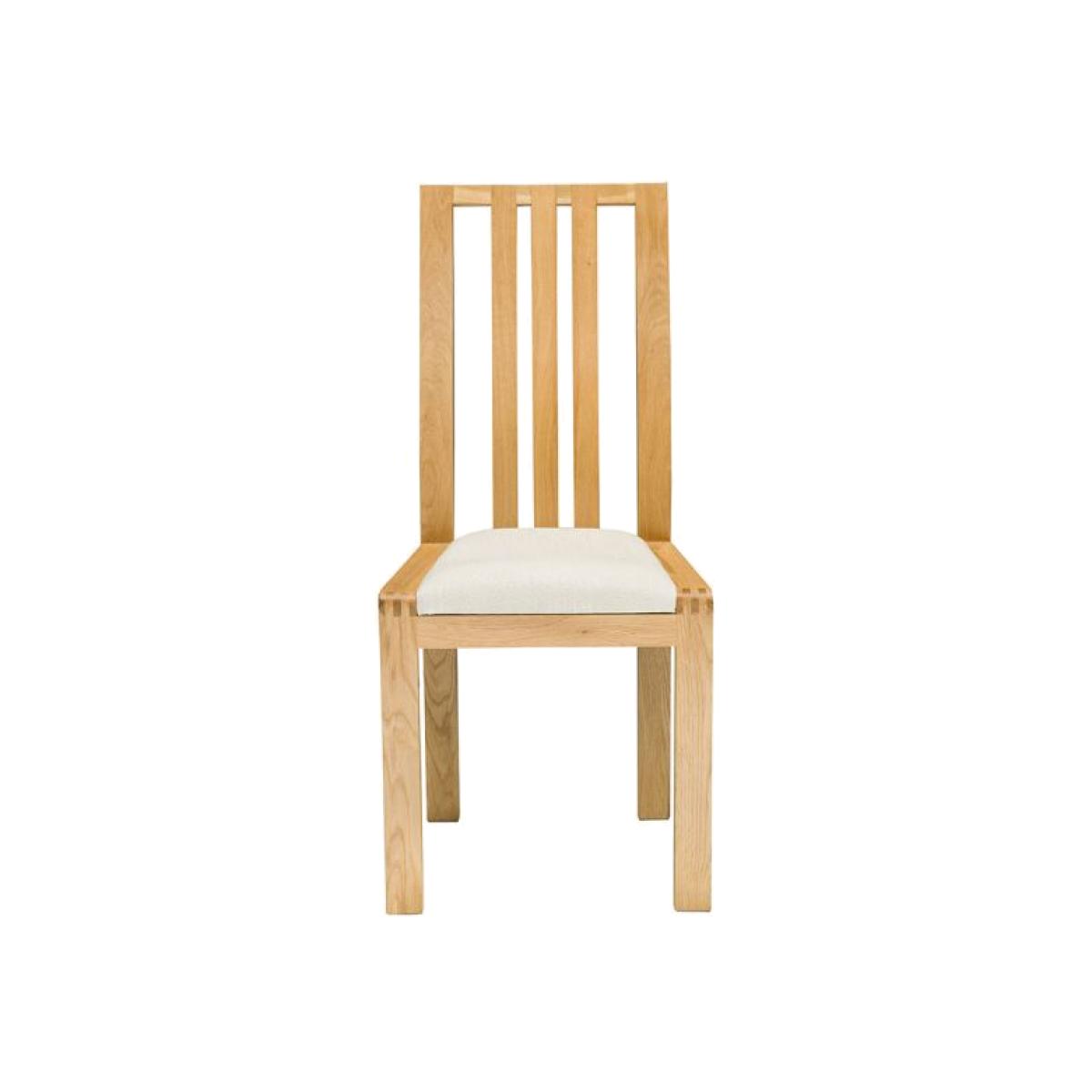 The curved profile of the Bosco dining chair back emphasises the solidity of the timber and provides added lumbar support. The chair seat is foam padded for added comfort and will be covered in cream fabric. The Bosco oak dining chair is finished in a clear matt lacquer to best show off the beauty of the oak. It also features Bosco curved finger joints on the corners of the dining chair and beautiful and distinctive large finger joint details across the top of the chair.