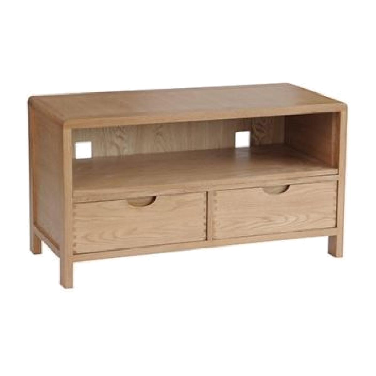 As well as accommodating your television, the Bosco TV cabinet provides space for placement of your smart box and DVD player. There are four cable openings placed conveniently at the back of the unit. The oak cabinet also offers two deep drawers providing plenty of storage space for DVD's and games. Curved recessed drawer handles are both wonderfully tactile and simply elegant. The television cabinet features curved finger joints on the top corners of the cabinet and finger joint details on all the drawer fronts. This piece of oak furniture is finished in our clear matt lacquer, providing protection whilst at the same time showing the beauty of the timber.