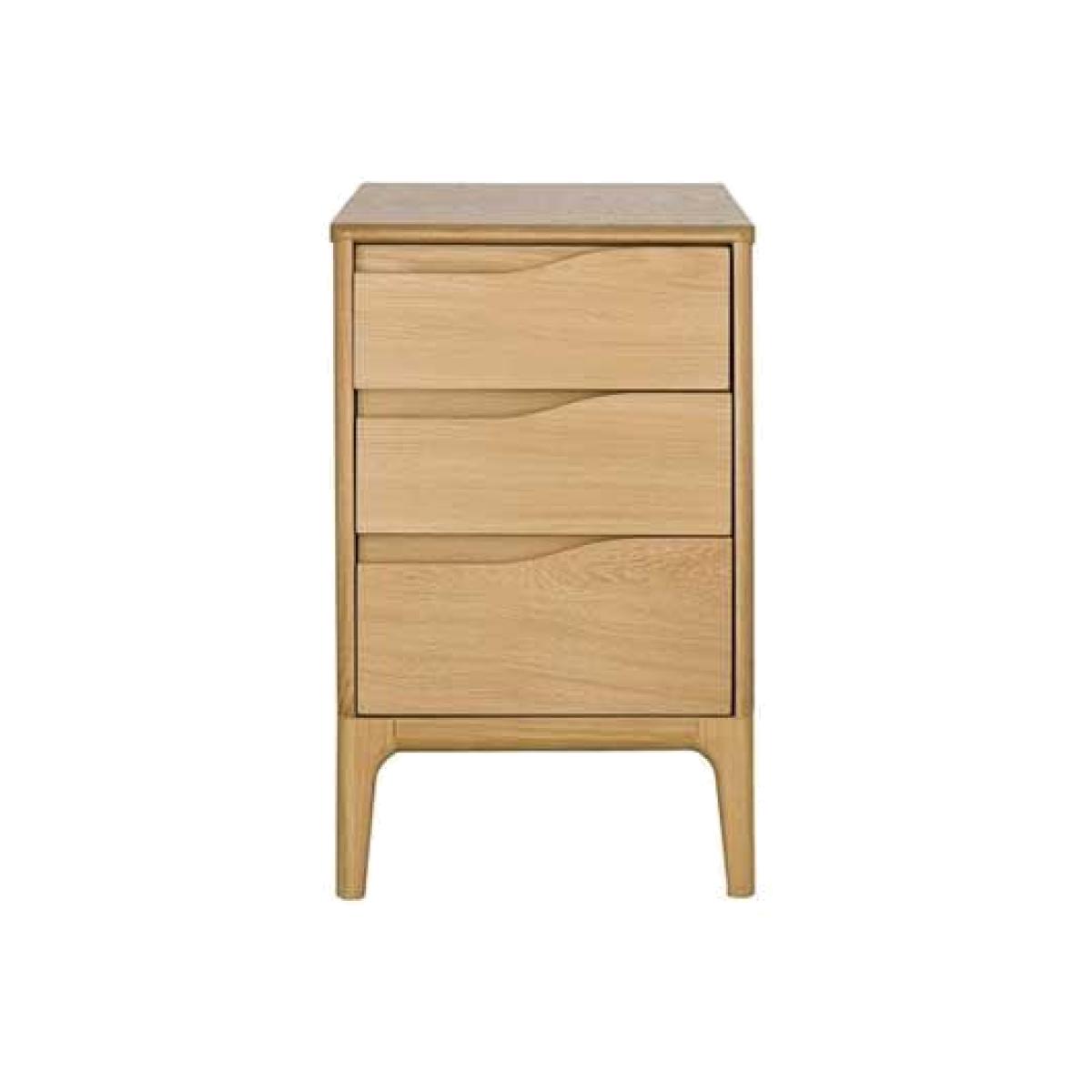 I love the Ercol 3292 Rimini compact bed side for its sleek, timeless design and versatile wooden finish. It works well in both contemporary and traditional interiors, adding warmth without overwhelming the space. Its three drawers provide practical storage while maintaining a clean, uncluttered look. Styling tips include keeping the top surface minimal with a simple lamp and a favourite book, or adding a small decorative object to bring personality. This piece is ideal for blending functionality with understated elegance, making it a great addition to a bedroom where natural materials and understated design are key.