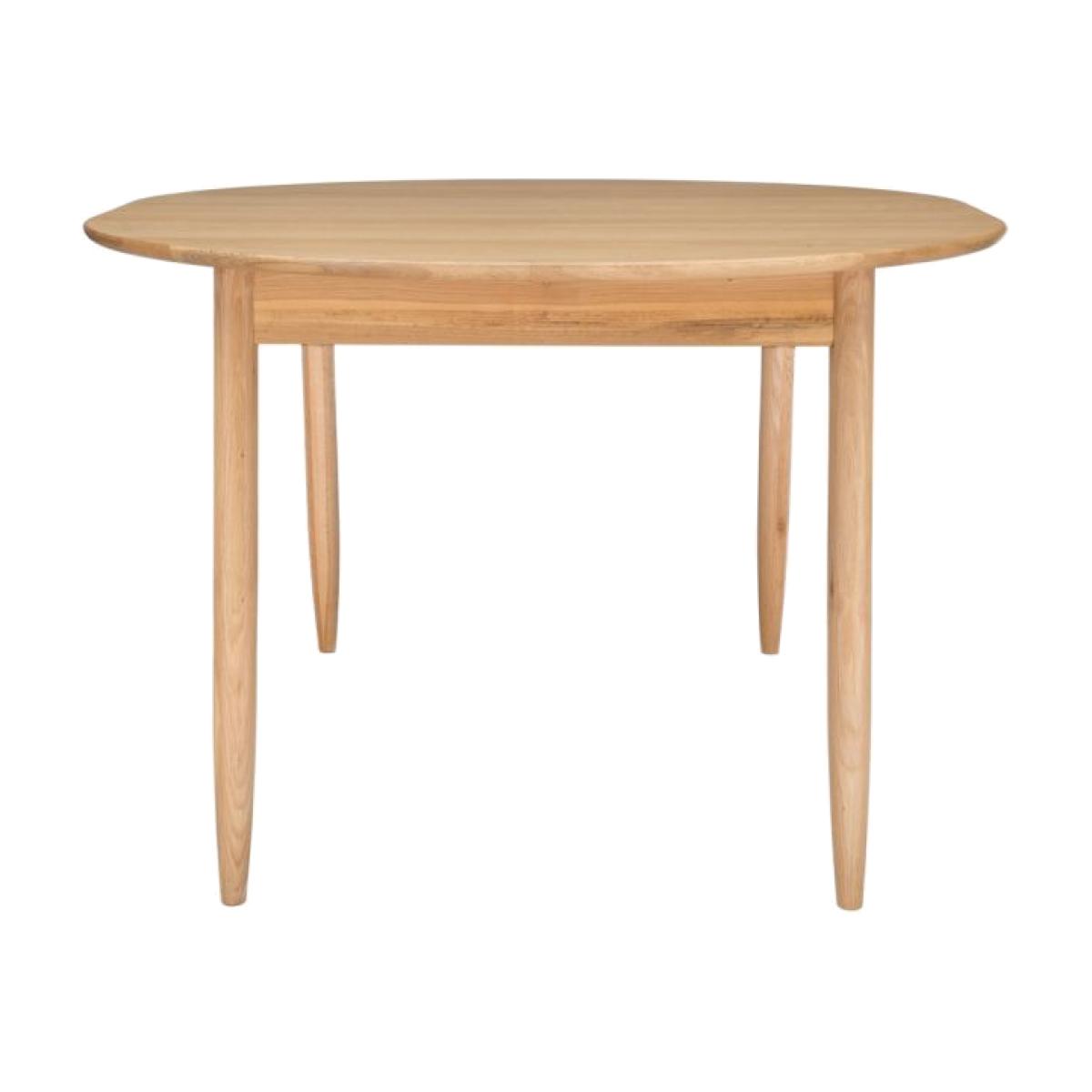 The Teramo small extending dining table in pale oak has an elegant, understated design that suits classic and modern interiors alike. The oval table top is supported by four gently splayed, tapering legs. This beautifully compact contemporary dining table extends to seat six people. The extension leaf is stored within the table, opening with ease with a butterfly mechanism. The Teramo collection is finished in clear matt lacquer, providing protection whilst emphasising the natural beauty of the oak. Dimensions: W130cm-170cm x D100cm x H75cm. Solid oak and oak vaneers in construction with a clear matt finish. Simple self assembly