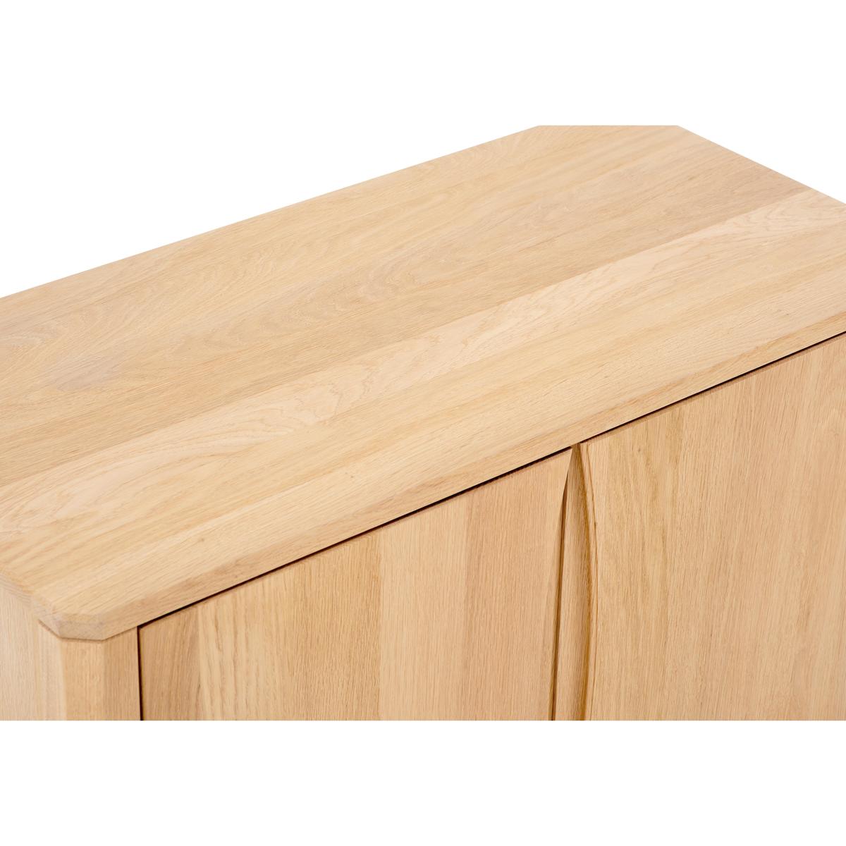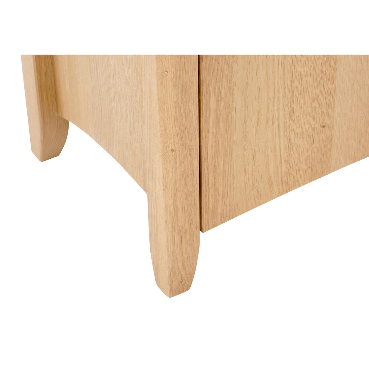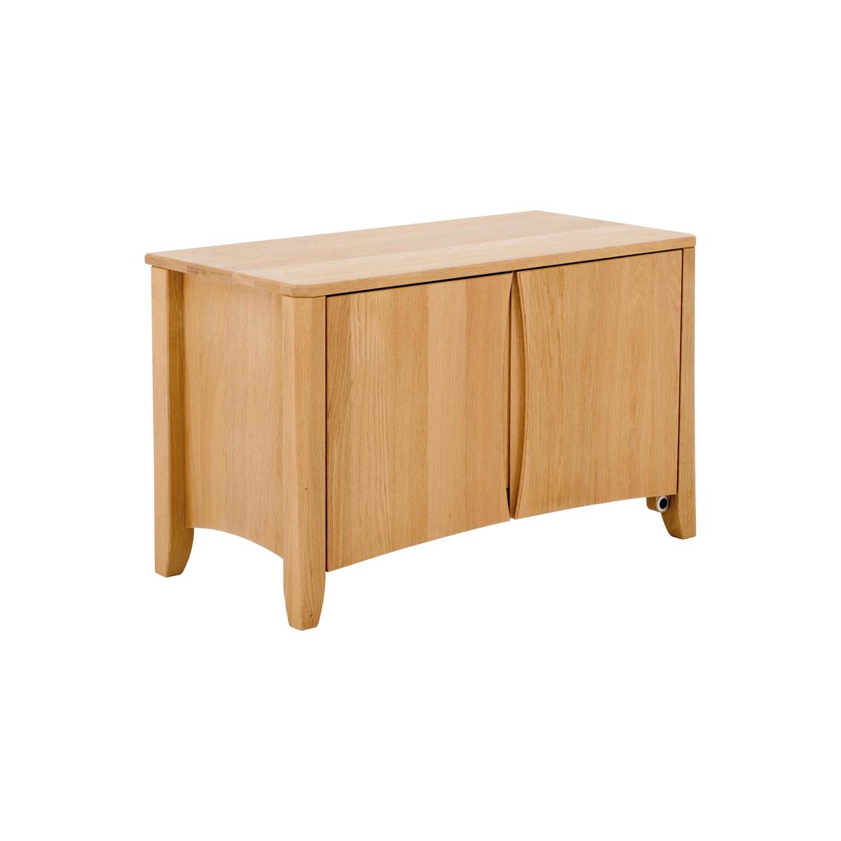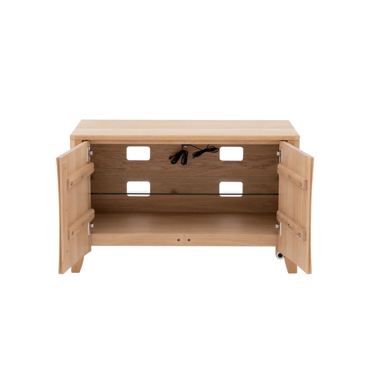 Perfect for smaller living spaces – or homes with more streamlined media equipment – the ercol Artisan IR TV unit is a simple, beautiful and unfussy way to store your media components. It’s also the perfect solution for anyone who prefers not to have media technology on display as, thanks to ercol’s IR technology, remote controls function even with the cupboard doors closed. Handcrafted from solid oak, this TV cabinet showcases iconic ercol design. The tapered legs have sloping chamfered edges, the recessed door handles are elegantly curved, and the clear matt lacquer finish both protects the wood and enhances its beautiful grain. And with a large double-door cupboard with adjustable glass shelf and two rear cut-outs for cables, it’s easy to keep all your media components neat and tidy. Exclusively available at Furniture Village, the ercol Artisan IR TV unit is part of the ercol Artisan range of storage, dining and occasional pieces. Did you know? Natural wood has unique markings, with some colour variation. The colour and tone of wood improves with age.
