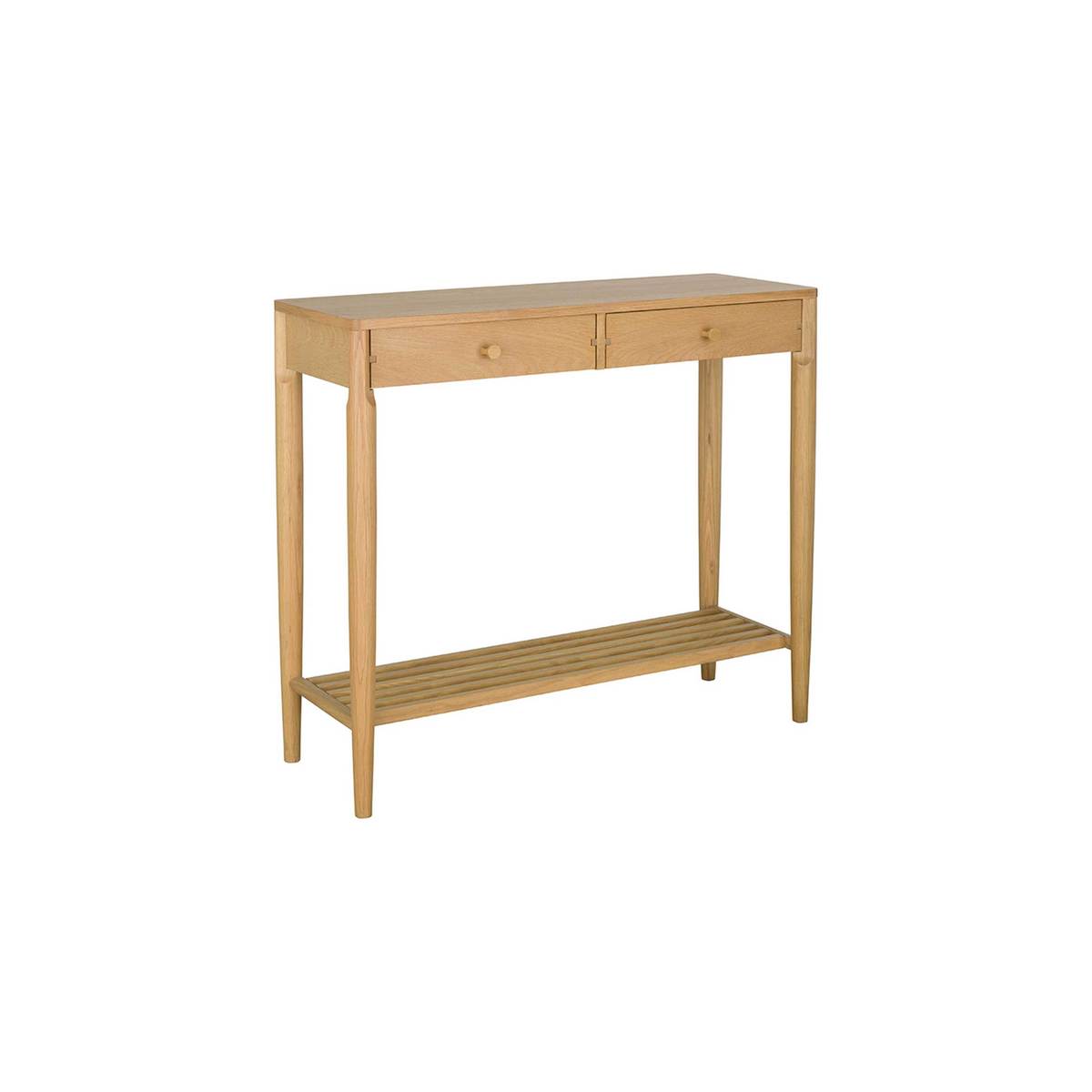 I really like the Ercol Askett console table for its classic, understated design that works well in a variety of interiors, from traditional to contemporary. Its light wood finish brings warmth and a natural touch, making it versatile for hallways, living rooms, or even bedroom spaces. I’d suggest styling it with a few carefully curated accessories, like a table lamp, a decorative tray, or some greenery to add interest without clutter. It’s also practical thanks to the lower shelf, great for storage or display of books and baskets, keeping the top surface tidy. Overall, it’s a functional piece with a timeless appeal, ideal for creating a welcoming and organised space.