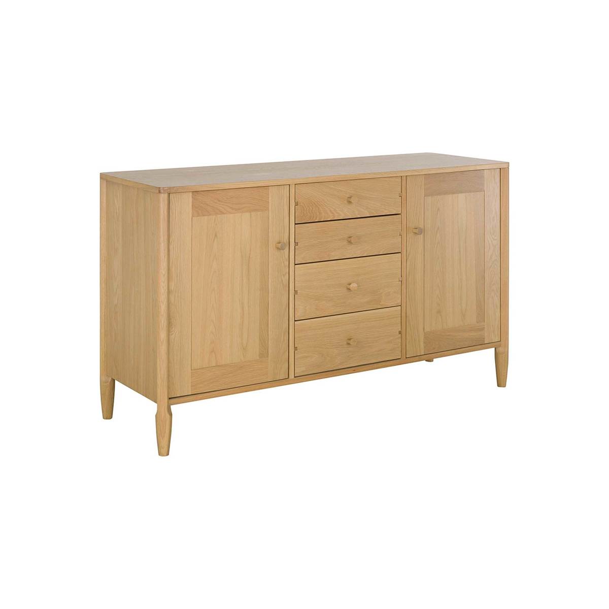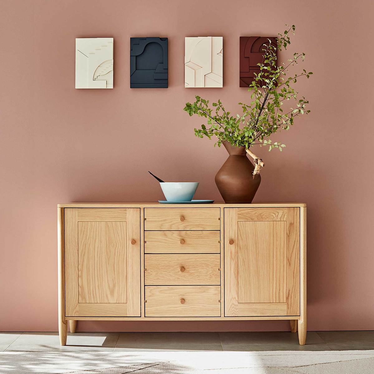 I love the Ercol Askett large sideboard for its clean, timeless design and warm wooden finish, making it a versatile piece that suits both contemporary and traditional interiors. It works particularly well in living rooms, dining areas, or even hallways where storage is key but style remains essential. To style it effectively, consider layering with a mix of decorative vases, books, or plants on top for visual interest, while keeping the drawers for organised clutter. Its neutral tone pairs beautifully with both pastel shades and darker, richer colours, allowing it to anchor a variety of colour schemes effortlessly.