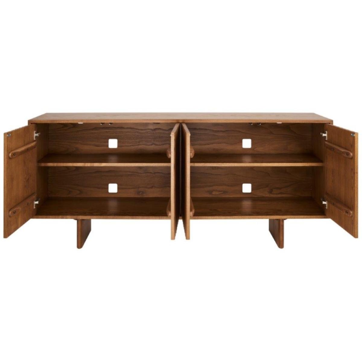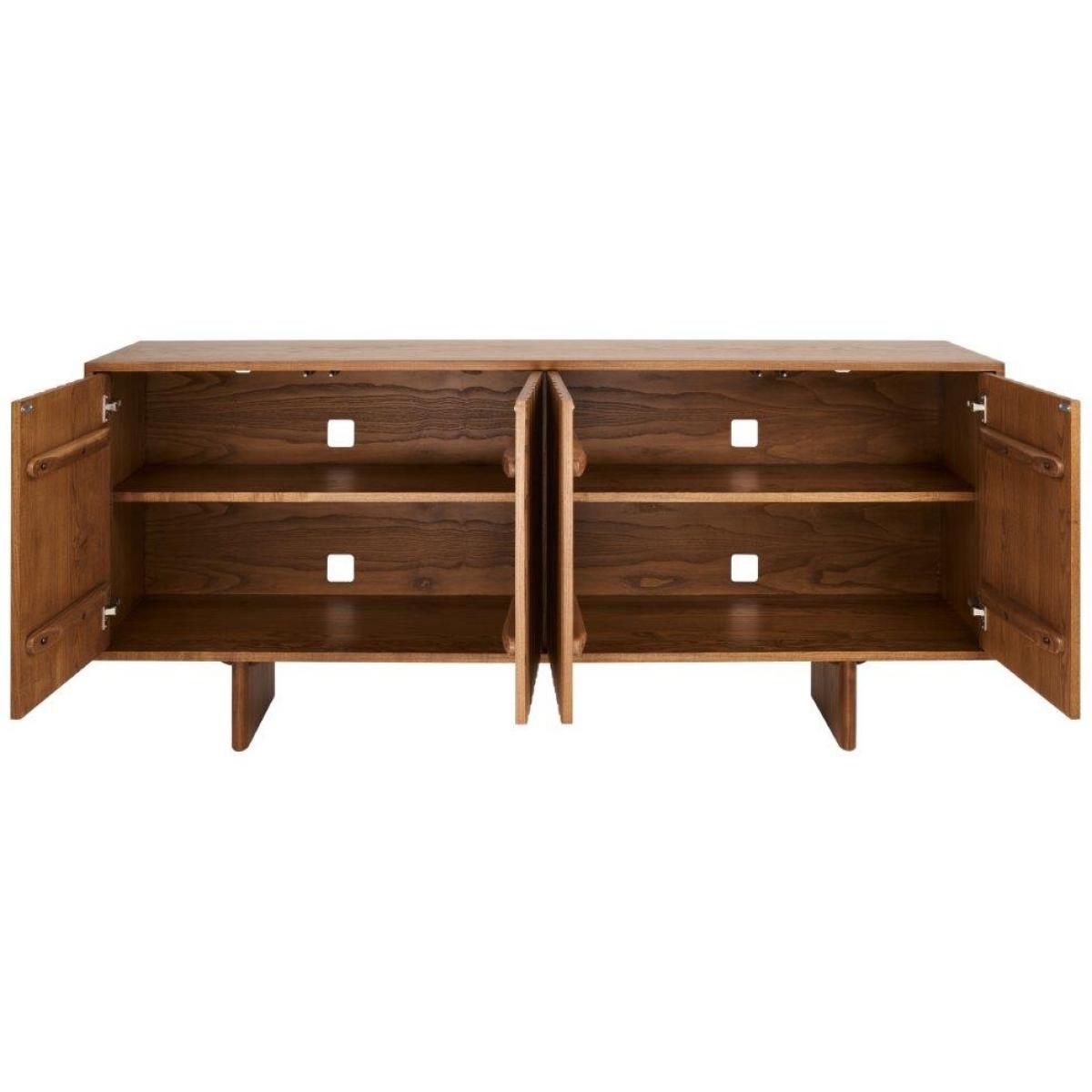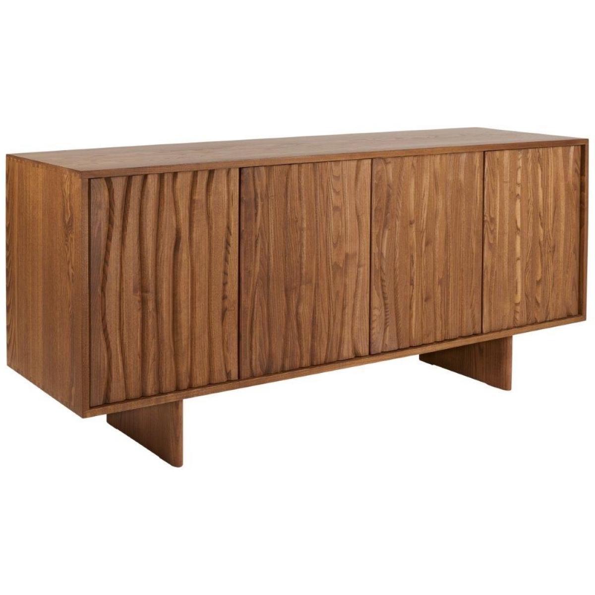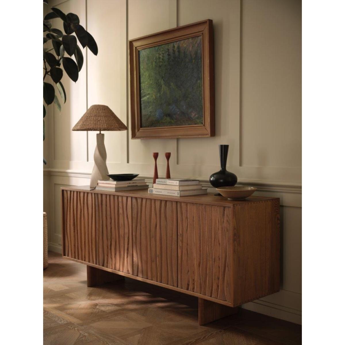 The ercol Assenden Large Sideboard, made in the Princes Risborough factory, is characterised by the striking pattern on the doors, inspired by tidal flow and movement. The pattern is precision routed out by the CNC of solid ash, displaying ercol's skill and craftmanship in furniture making. Due to the infinite variety of wood grain each piece will have its own unique pattern and look, adding to the sideboard's individual character. The clean lines of the doors are maintained with push opening/closing, the shelves are adjustable, and each cabinet has cable management holes. Features: Push Open/Close Doors Cable management holes Adjustable shelves Fully Assembled Solid Ash Handmade in the UK Pick from your favourite wood stain for this beautiful piece of furniture. Large sideboard: Width: 183cm Depth: 45cm Height: 78cm Under cabinet clearance: 19cm All screens vary in colour reproduction and whilst every effort has been made to display the colour as accurately as possible it is for guidance only.