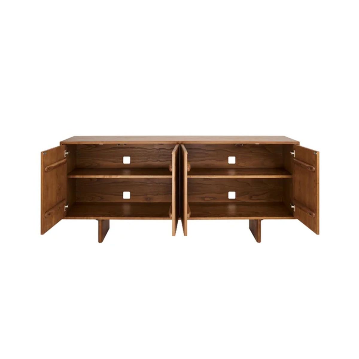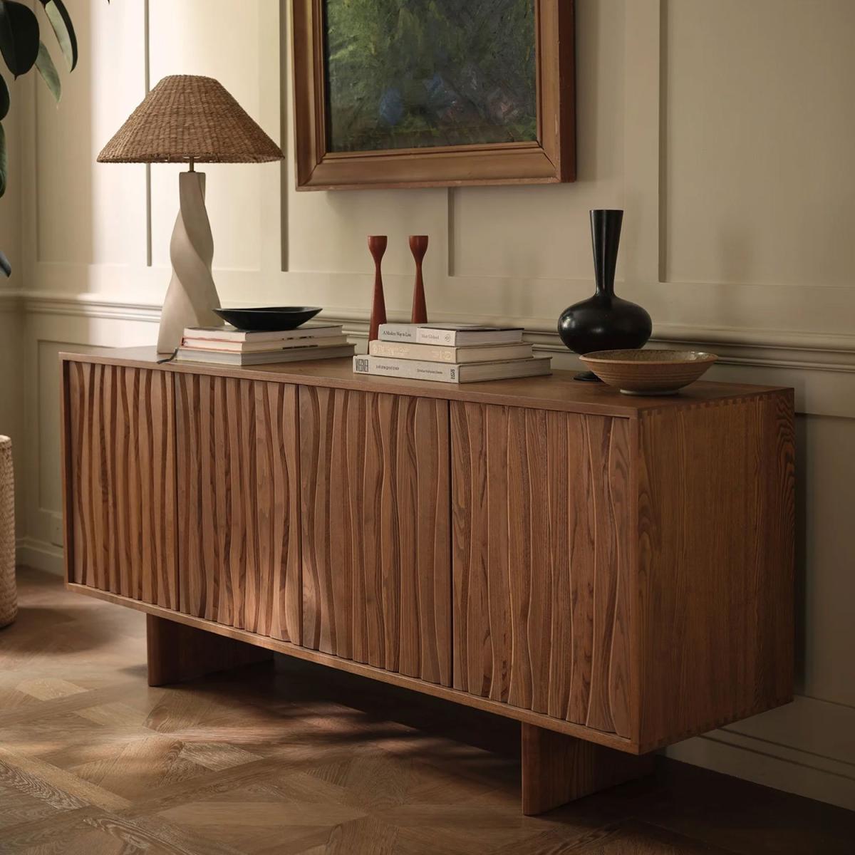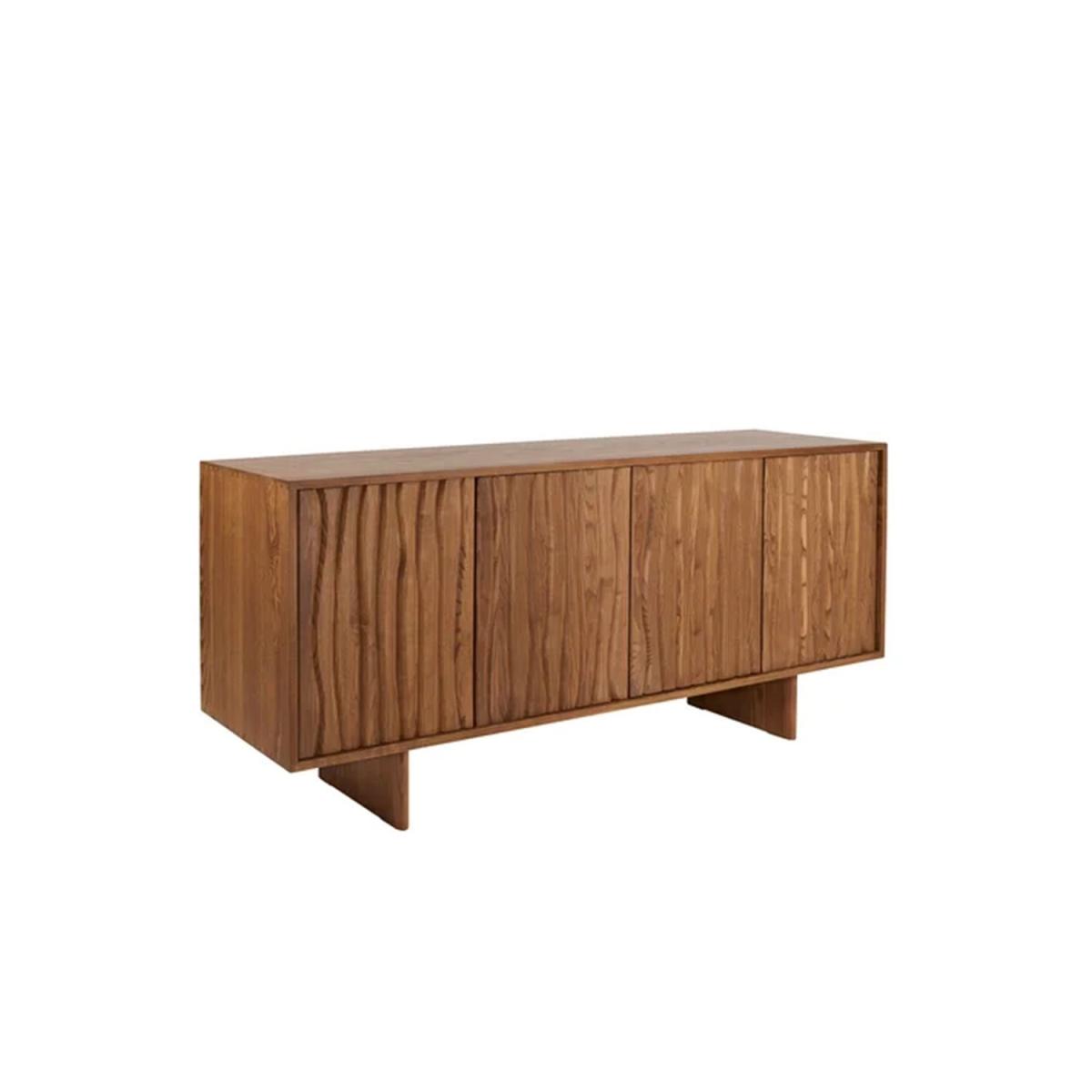 The new Ercol Assendon Sideboard showcases the best of British craftsmanship. Characterised by the striking pattern on the doors, this sideboard is inspired by tidal flow, the pattern precision routed out of solid ash, displaying Ercol’s skill in furniture making. Due to the infinite variety of wood grain, each piece will have its own unique patternation and look, adding to the sideboard’s individual character. The clean lines of the doors are maintained with push opening/closing - an increasingly popular method to avoid the use of handles. For maximum versatility and practicality, the shelves are adjustable, and the sideboard has cable management holes in each cupboard section to make it the ideal fit for a modern household.