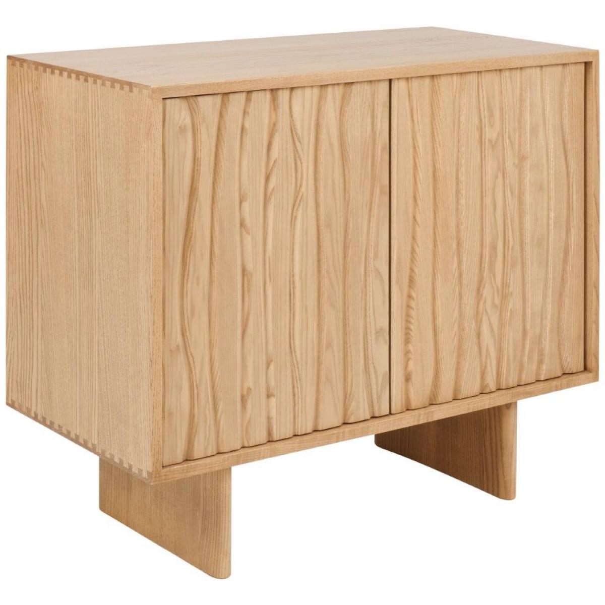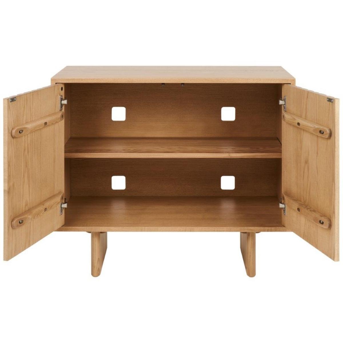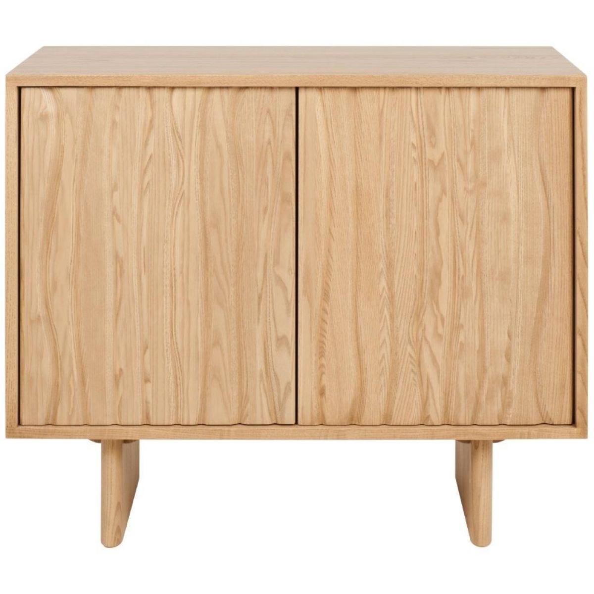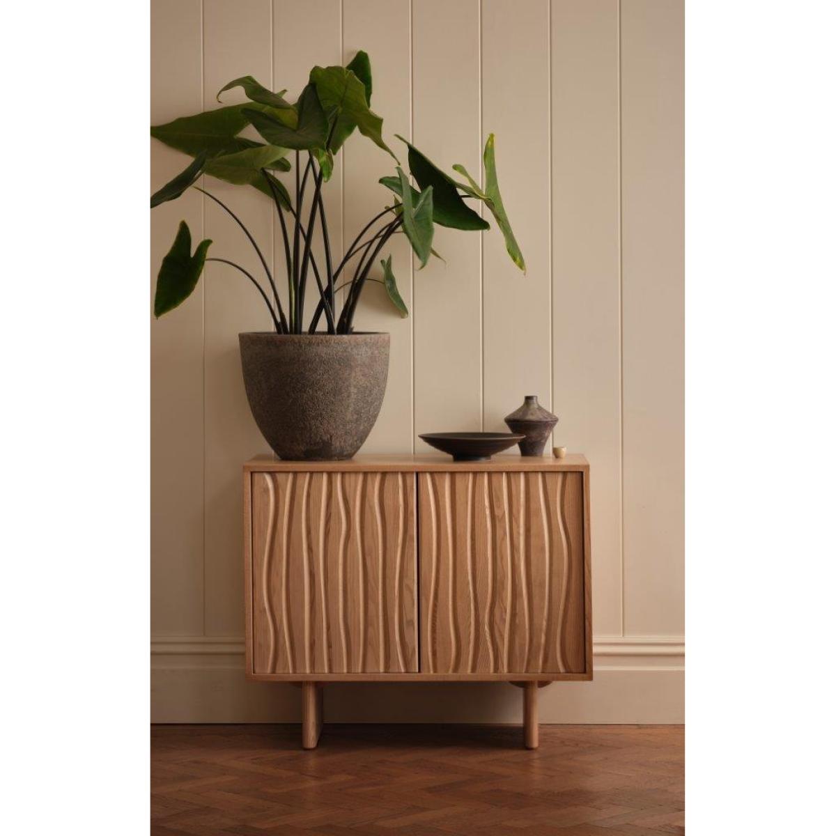 The ercol Assenden Small Sideboard, made in the Princes Risborough factory, is characterised by the striking pattern on the doors, inspired by tidal flow and movement. The pattern is precision routed out by the CNC of solid ash, displaying ercol's skill and craftmanship in furniture making. Due to the infinite variety of wood grain each piece will have its own unique pattern and look, adding to the sideboard's individual character. The clean lines of the doors are maintained with push opening/closing, the shelves are adjustable, and each cabinet has cable management holes. Features: Push Open/Close Doors Cable management holes Adjustable shelves Fully Assembled Solid Ash Handmade in the UK Pick from your favourite wood stain for this beautiful piece of furniture. Small Sideboard Dimensions: Width: 94cm Depth: 45cm Height: 78cm Under cabinet clearance: 19cm. All screens vary in colour reproduction and whilst every effort has been made to display the colour as accurately as possible it is for guidance only.