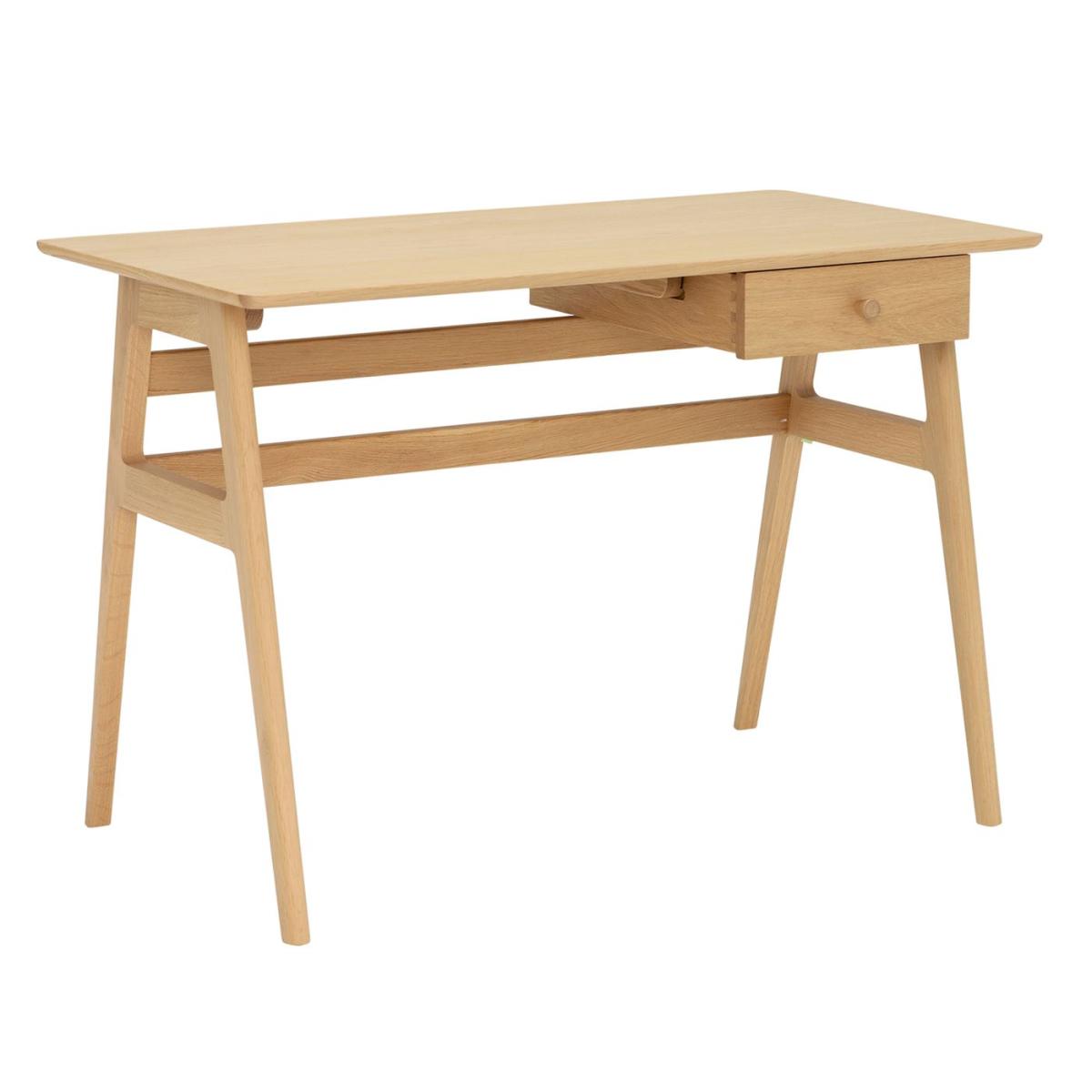 I’m a fan of the Ballatta desk for its crisp, light timber finish and clean-lined silhouette - it slips easily into Scandinavian, mid-century or minimalist interiors without overwhelming the room. The single drawer keeps stationery tucked away, while the gently tapered legs add a sense of airiness. Styling-wise, keep the desktop clutter-free: a slender task lamp, a small stack of books and a simple ceramic planter look right at home. Tuck a woven basket underneath for extra storage and choose a slim-profile chair in muted tones to maintain that calm, organised feel.