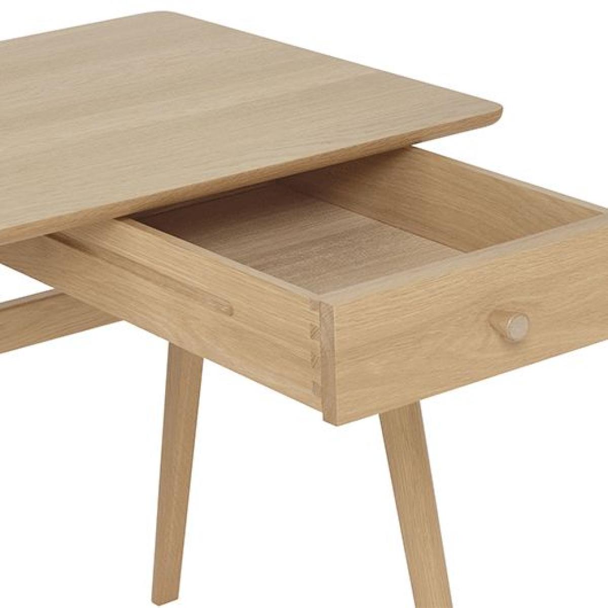 The oak Ballatta desk is ideal to use with a laptop or as a writing desk and will add a touch of style to a living or work space. The desk sits on tapered legs which are elegant yet understated, it can sit in a home office, a study and is compact enough for a hallway or a lounge. There is a handy small built in drawer to help keep the desk tidy. The Ballatta desk is made of solid oak and oak veneers and finished in a contemporary clear matt lacquer.