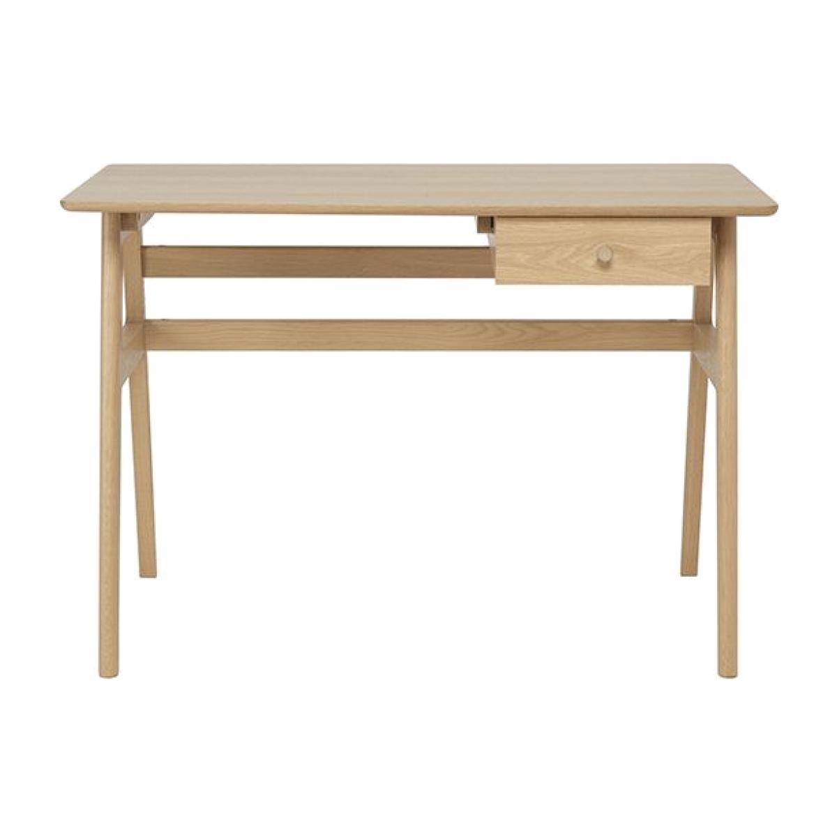 I’m a fan of the Ballatta desk for its clean lines and lightweight frame - it never overpowers a room yet still feels substantial thanks to that warm oak finish. Its narrow depth makes it ideal for a hallway study nook or beside a living-room window, and it sits equally well in Scandi-inspired, mid-century or contemporary schemes. To style it, keep the desktop clutter-free: add a slim LED lamp, one or two stacked books, a small pot plant and a minimal pen pot, then hide cables and loose paper in the single drawer.