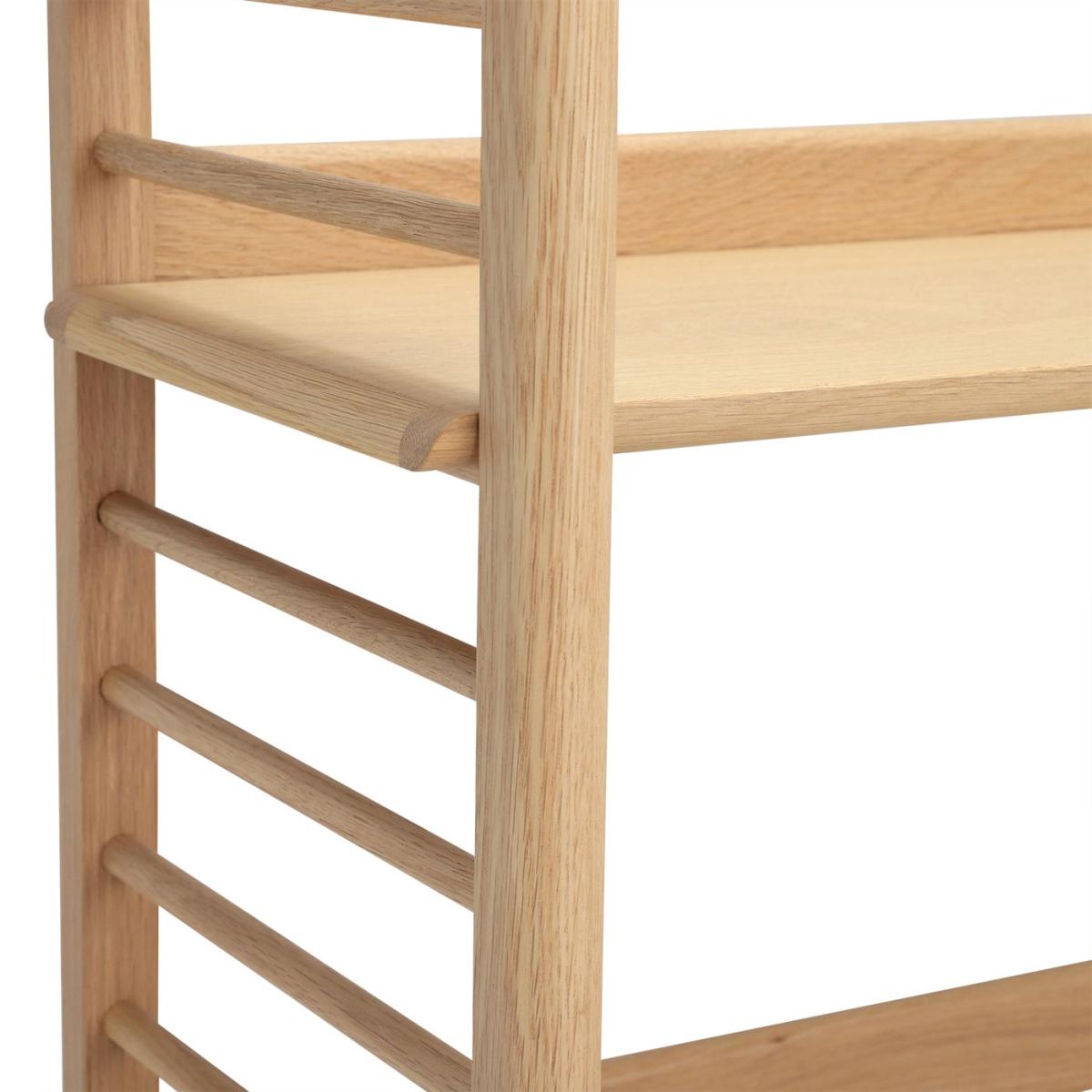 Featuring a compact design that has been crafted with smaller spaces in mind, The Ballatta shelving unit has two fixed and two adjustable shelves that make it perfect for personalising open plan living rooms. Ideal for holding books or keepsakes, move the two adjustable shelves, which sit on the rungs of the spindled sides, as your please. With a look that is both pared back and timeless, the Ballatta is crafted from solid oak and oak veneers and finished with a clear matt lacquer for a look that complements most decors and colour schemes.