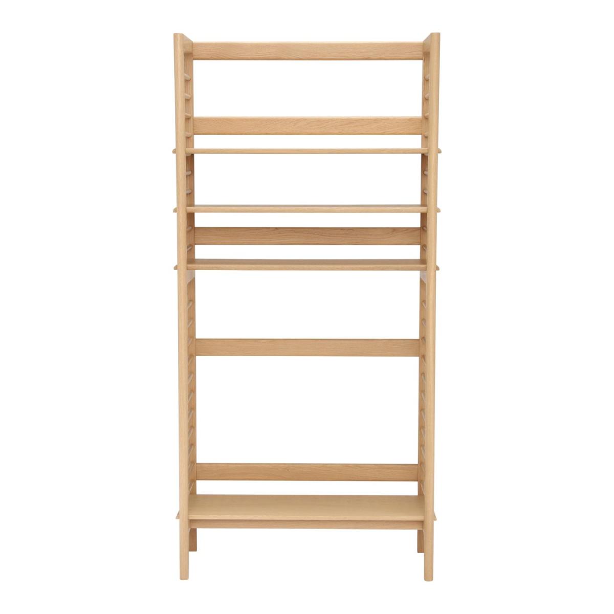 I’m a fan of the Ballatta shelf for its light, open feel and natural oak finish - it brings warmth without looking bulky. The slim frame and slatted sides suit Scandi, modern coastal or mid-century interiors, and it’s flexible enough to complement both muted neutrals and bolder accent walls. To style it, mix books arranged vertically and horizontally with small art objects or ceramics, then balance with woven baskets or storage boxes on lower tiers. Introduce a couple of trailing plants or sculptural vases to soften the lines, and vary heights and textures so each shelf feels intentional rather than overcrowded.