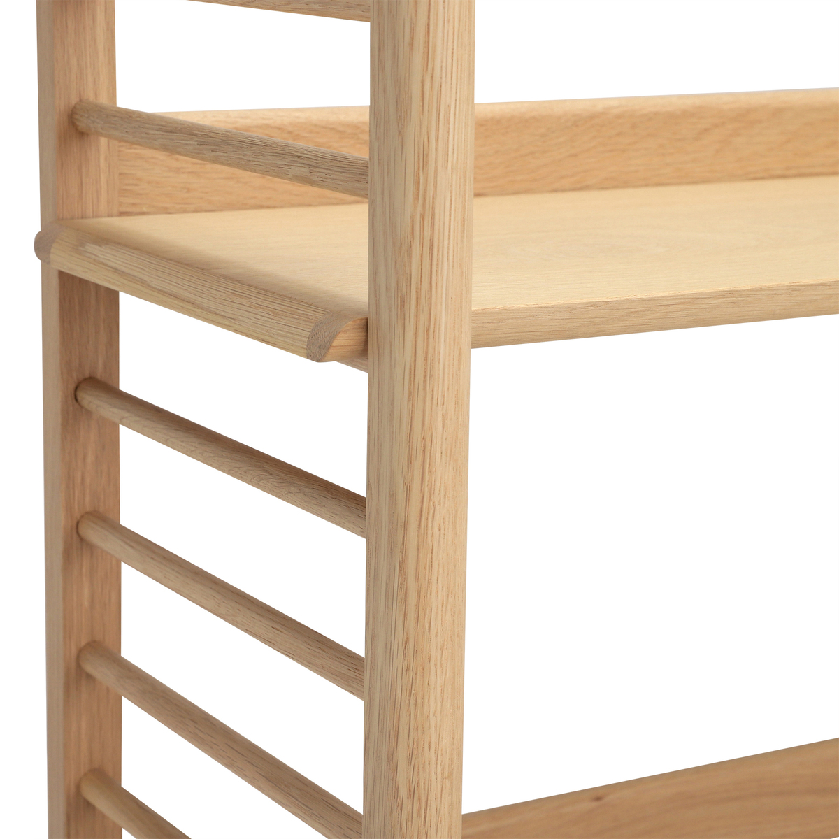 I love this piece because of its minimalist, clean-lined design that works well in both modern and Scandinavian-inspired interiors. The natural wood adds warmth and texture, making it versatile for various colour schemes. It’s perfect for creating a functional display area, whether you’re showcasing books, plants, or decorative accessories. For styling tips, consider varying the heights and types of items you place on each shelf to avoid visual clutter, and add some colourful or textured objects to create interest. It also looks great when paired with soft textiles or subtle accessories to prevent it from feeling too clinical or stark. Overall, it’s a flexible, practical choice that adds a touch of understated elegance.