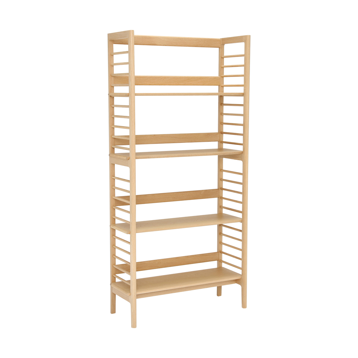 Featuring a compact design that has been crafted with smaller spaces in mind, The Ballatta shelving unit has two fixed and two adjustable shelves that make it perfect for personalising open plan living rooms. Ideal for holding books or keepsakes, move the two adjustable shelves, which sit on the rungs of the spindled sides, as your please. With a look that is both pared back and timeless, the Ballatta is crafted from solid oak and oak veneers and finished with a clear matt lacquer for a look that complements most decors and colour schemes.