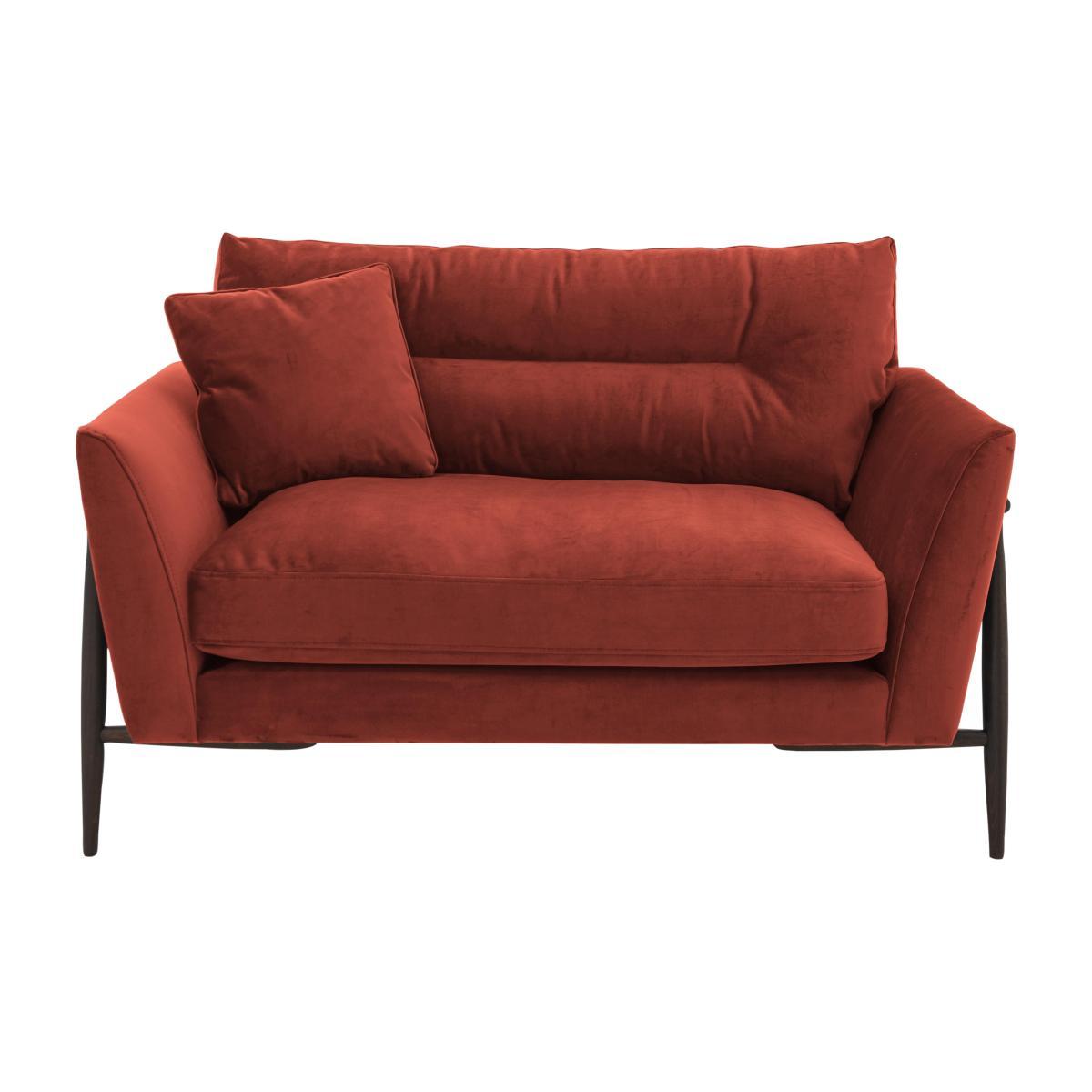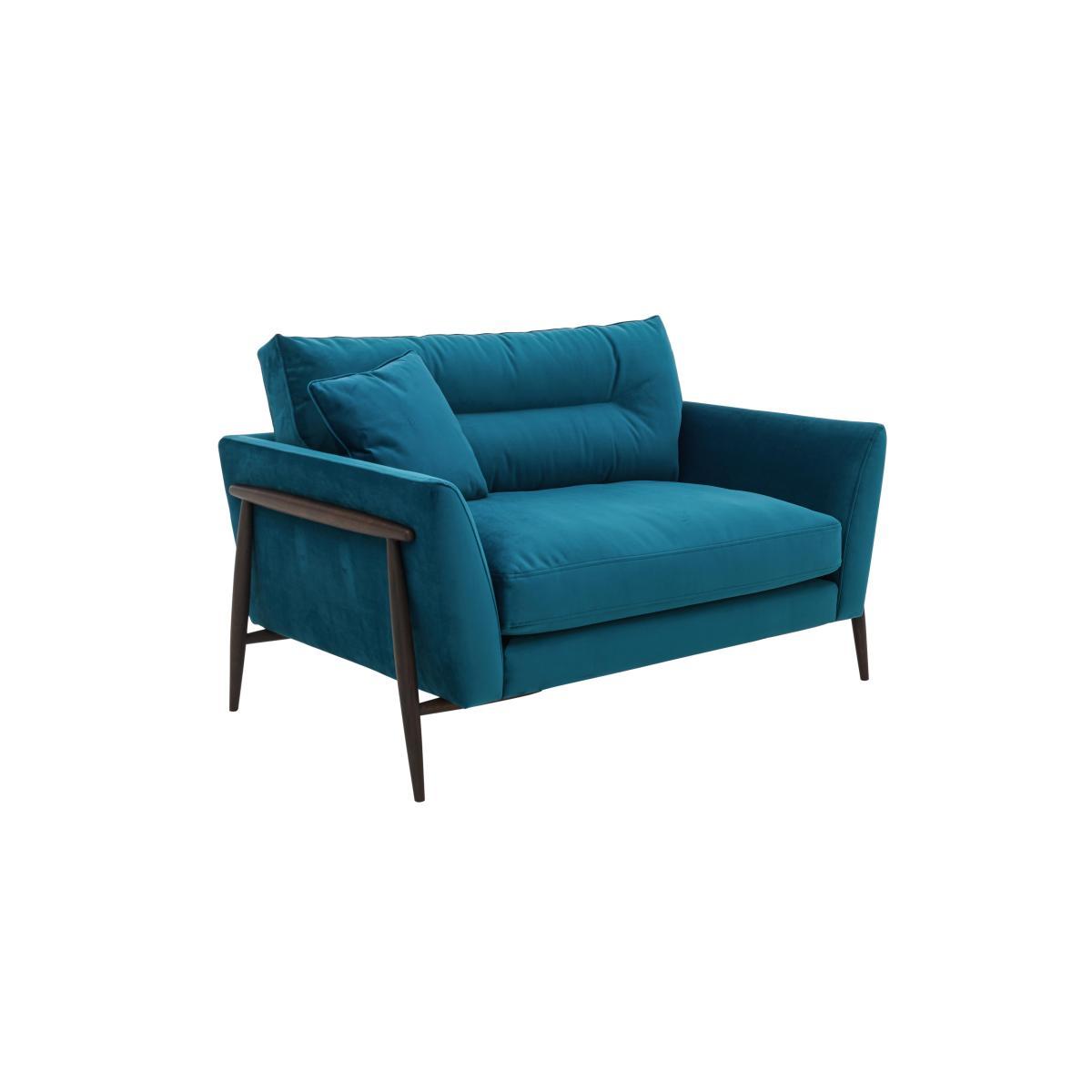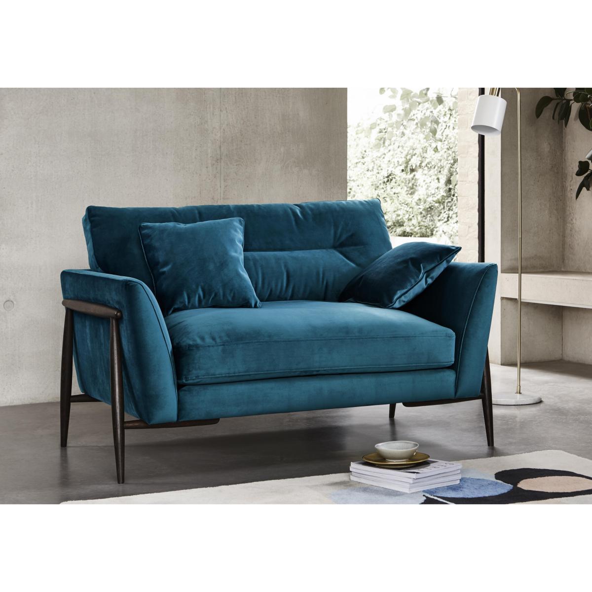 The Bellaria range from Ercol is beautifully designed with slim silhouettes that suit smaller spaces. Each piece – from chaise sofa to versatile footstool – comes in a choice of gorgeous textured and velvet fabrics with a selection of colours exclusive to Furniture Village. The turned and tapered solid oak legs come in a light or dark finish. Sink into the deep-seated luxury of foam with fibre wrap seat cushions and reversible, fibre filled back cushions. Why choose between style and comfort when you can have both?. Sumptuous reversible back cushions keep their shape for longer. Exquisitely turned solid oak legs in a light or dark finish. In exclusive woven textured and plush velvet fabrics. The Ercol Bellaria fabric snuggler chair is invitingly comfortable, and roomy enough for two with deep foam with fibre wrap seat cushions and reversible luxury fibre back cushions. It has an elegant silhouette with slim cushioned arms and tapered and turned solid oak legs in a light or dark finish. Choose from gorgeous textured weaves and velvets for the upholstery, including colours exclusive to Furniture Village. Includes one scatter cushion as standard. Top tip. Some fabrics can show wear on areas of more use or in direct sunlight and foam and fibre interiors will soften with use. To keep your fabric upholstery looking fresh, plump, turn and rotate seat and back cushions regularly if possible. Please read our upholstery care guide for more advice on caring for your fabric sofa.