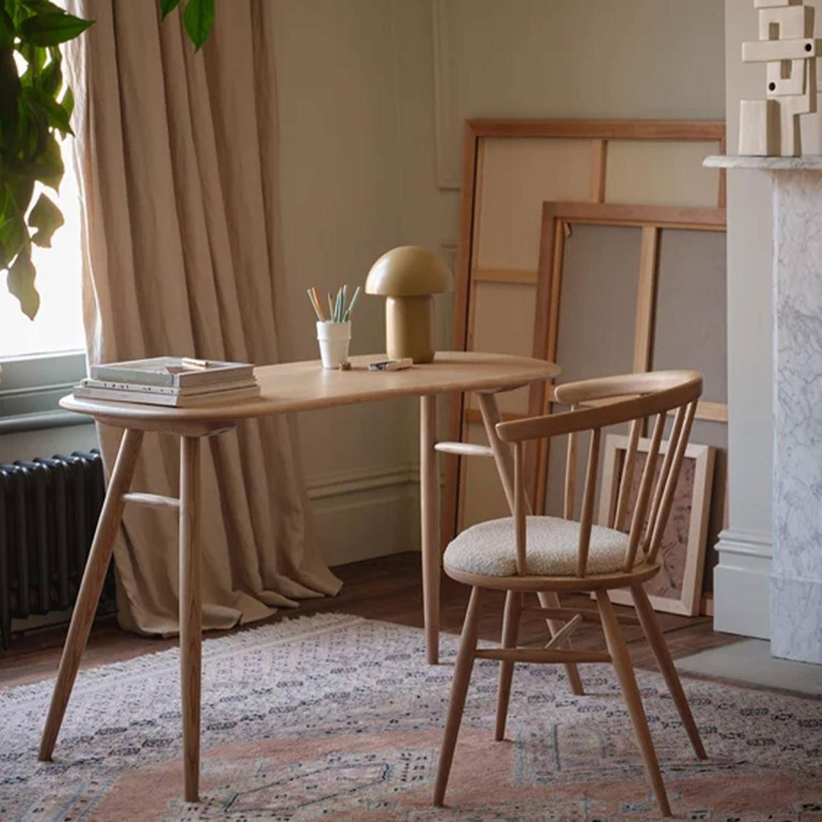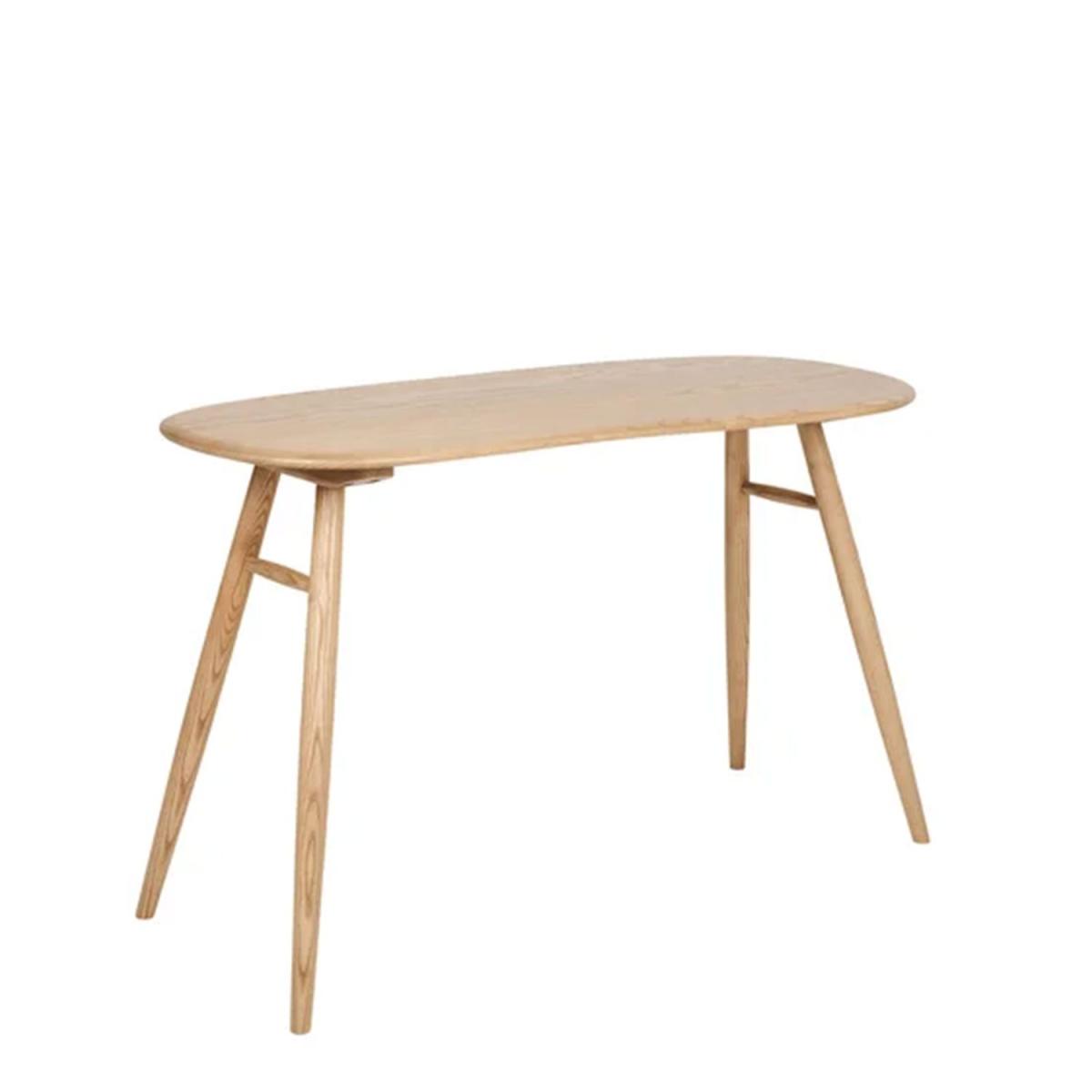 The Bix Desk from Ercol is a statement piece of furniture. With organic flowing lines and elegant tapered legs, this desk would be perfect within a living or work space, adding a touch of style to any study spot in your home. The Bix desk is crafted from solid ash and is available in a variety of finishes, while its asymmetric shape gives an ideal space to fit an office chair into the curve of the solid wood top.