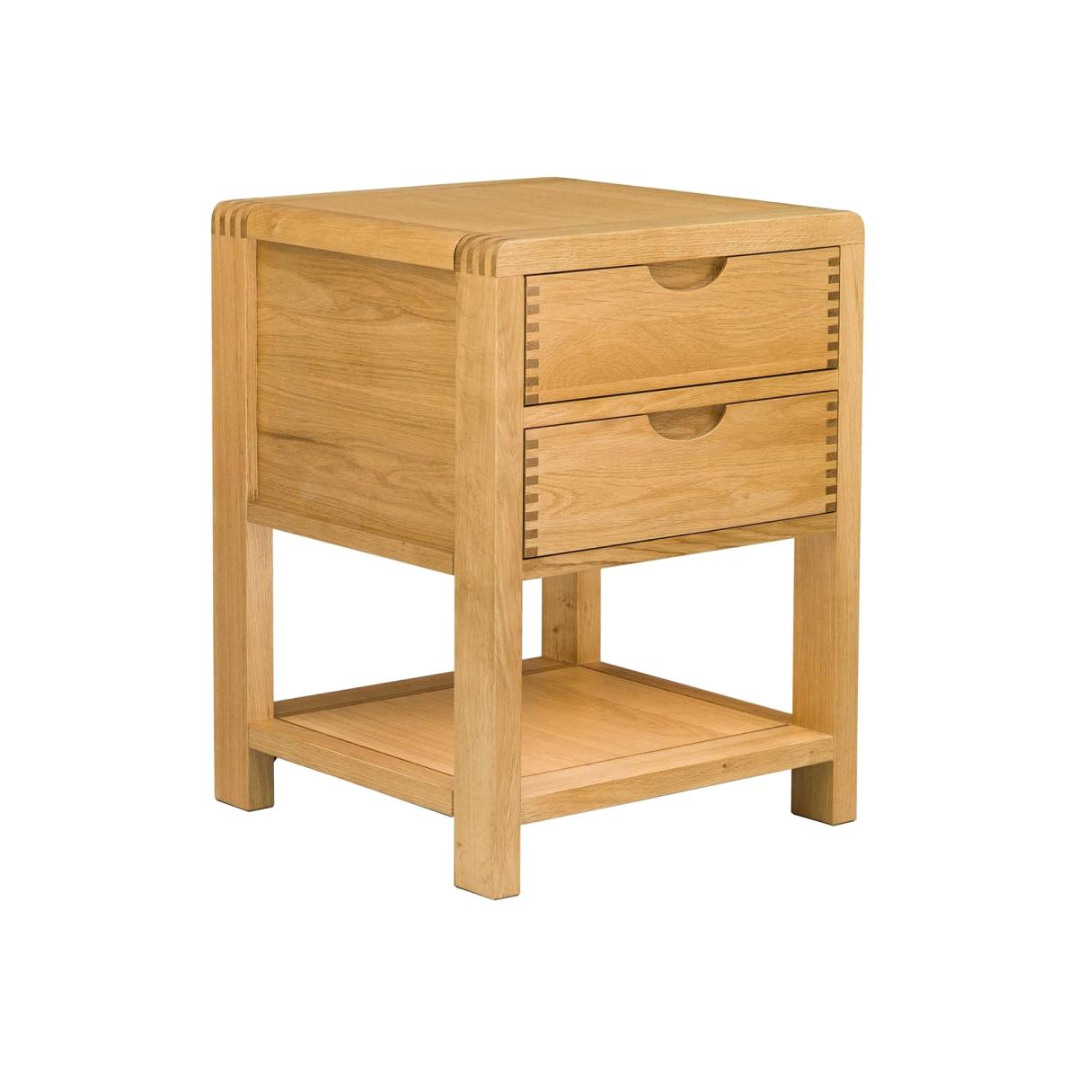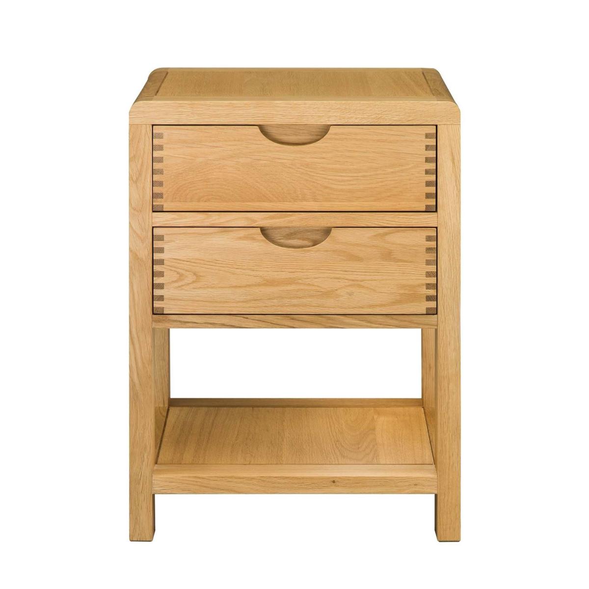 Design. An attractive edition to your bedroom. TheErcol Bosco 2 Drawer Bedside Cabinet is perfect for storing your essentialevening items. Finished with tactile design features such as exposed finger joints and curved edges, this is a unique piece that will fit seamlessly into a modern home.