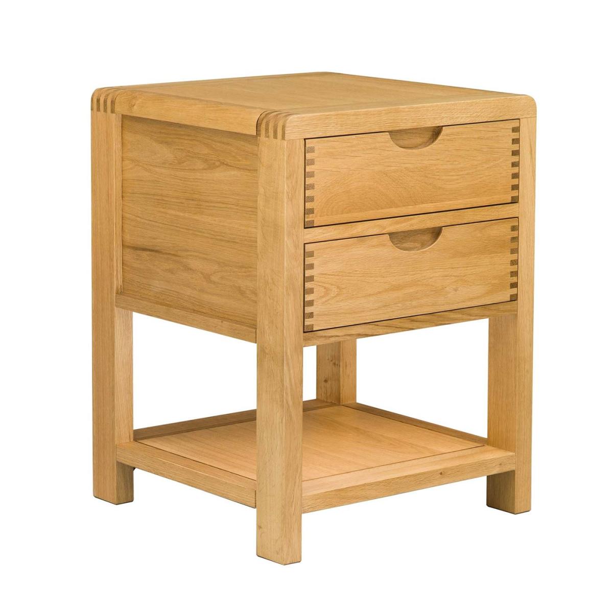 An attractive edition to your bedroom. The Ercol Bosco 2 Drawer Bedside Cabinet is perfect for storing your essential evening items. Finished with tactile design features such as exposed finger joints and curved edges, this is a unique piece that will fit seamlessly into a modern home.