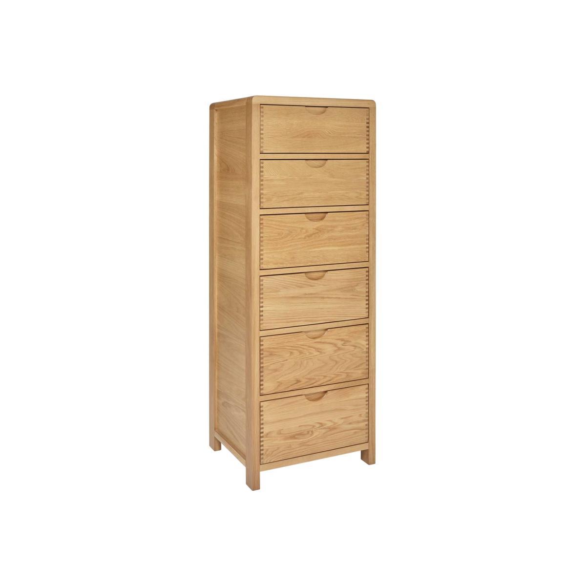 Design. Solid oakhas been beautifully crafted to bring you theErcol Bosco 6 Drawer Tall Chest. An impressive storage solution for any modern bedroom with plenty of roomfor clothing and more. Finger jointed detailing gives this piece a distinctive look that is modern yet timeless.