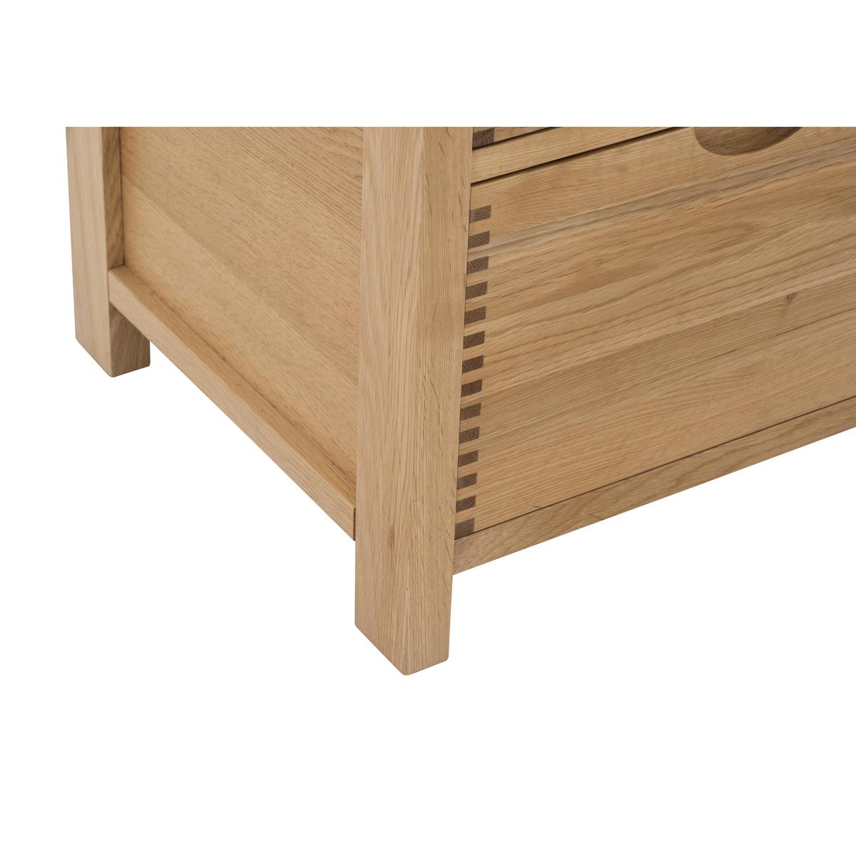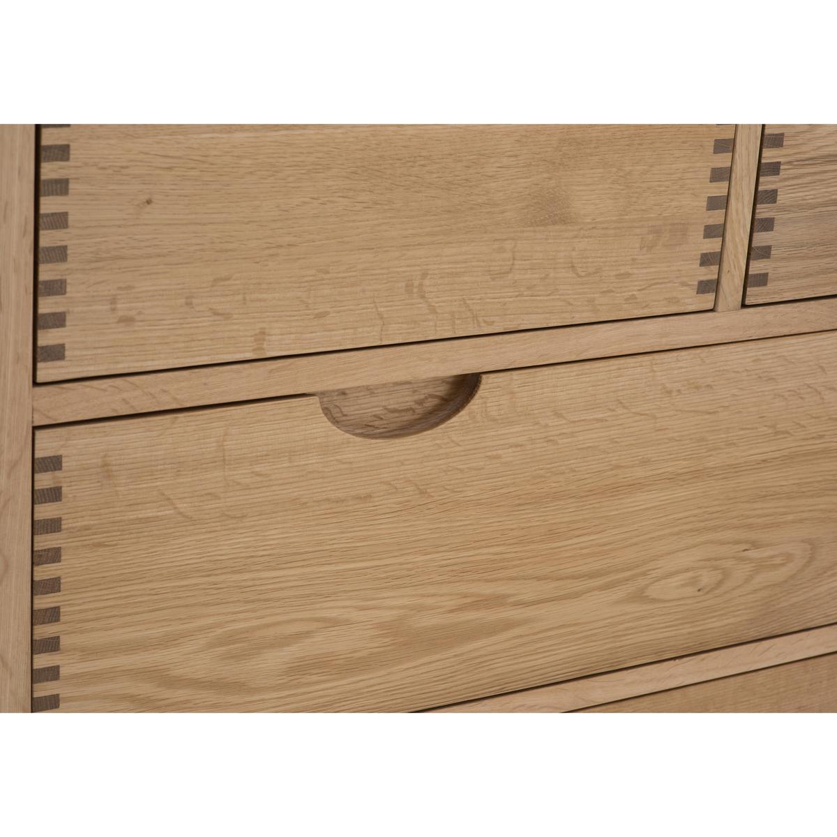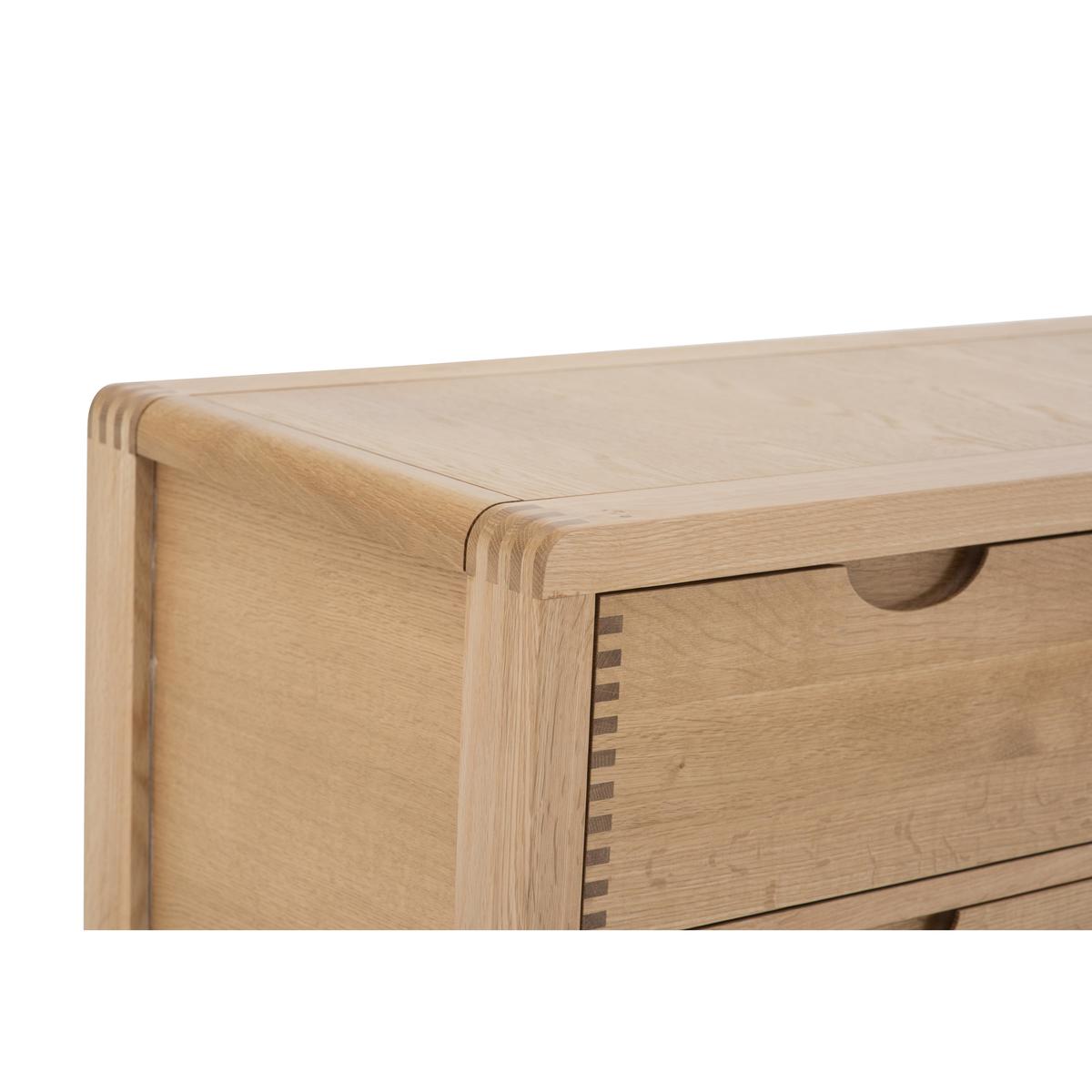 Wake up to the timeless beauty of Bosco wooden bedroom furniture. Each piece is exquisitely designed and handcrafted from solid oak with oak veneers, finished with a clear matt lacquer. This brings out the unique natural variations in the grain. Detailing includes exposed finger joints and distinctive cut out handles. Finished to the high standards you’d expect from ercol. A thing of beauty from top to bottom, the stylish Bosco 6 drawer tall chest combines wonderful bedroom storage with gorgeous craftsmanship. This large chest of drawers showcases ercol’s signature detailing in the exposed finger joints and attractive semi-circular recessed handles. It’s made from solid oak and oak veneer and is finished with a clear matt lacquer which really emphasises the natural wood grain. Tall and wide, this chest of drawers offers plenty of useful storage with two smaller drawers above four full-width deep drawers. The ercol Bosco 6 drawer tall chest is one of two chests of drawers in the ercol Bosco bedroom furniture collection. The range also includes a stunning bed frame, bedside cabinet, storage bench and two wardrobes. If you love the look, know that the ercol Bosco living and dining room collection offers a huge range of storage pieces, occasional tables, dining tables and dining chairs. WARNING!. Furniture can tip over unexpectedly and cause injury. This item shall be fixed to a wall using the anti-tip kit provided with the furniture. Be sure to use the correct wall fixings suitable for the walls in your home. Did you know?. Natural wood has unique markings, with some colour variation. The colour and tone of wood improves with age.