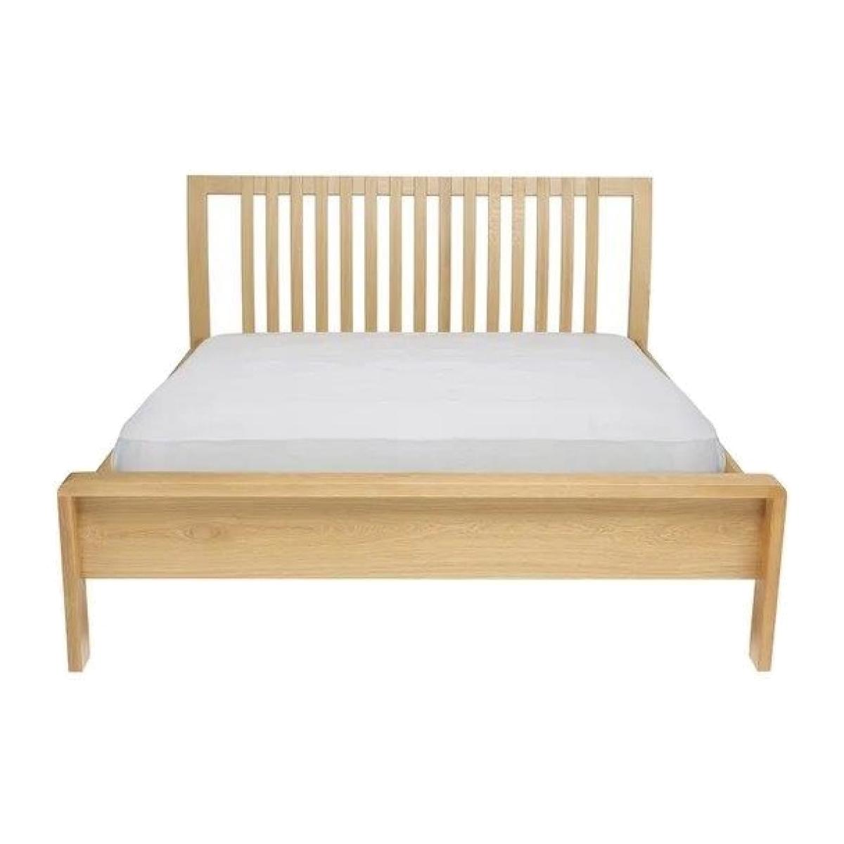 The detail of the exposed finger joints and curved edges create a distinctive look for this bedroom furniture range. The bed reflects this detail with its beautiful curved slatted headboard. As well as being designed for its looks, the Bosco bedroom furniture range is also designed for comfort and for practicality. The Bosco bed will form the centre-piece of your bedroom, with its beautiful and distinctive headboard with its distinctive feature jointing of the curved slats recessed into the headboard top-rail. The foot of the bed has the signature Bosco curved finger joint detail. Not only does the Bosco king size bed look great, but its pre-sprung wooden slats will help give you a good night's sleep. Bosco is available in pale oak with a clear matt lacquer. To enable the bed to get through your door it comes flat packed and requires assembly. Available in Clear Matt only. Double Size Dimensions: Width: 149cm Depth: 211cm Height: 106cm King Size Dimensions Height: 106cm Width: 149cm Depth: 211cm Super King Size Dimensions Width: 194cm Depth: 221cm Height: 106cm To enable the bed to get through your door it comes packed flat and requires assembly. Wood is a natural material, consequently the grain pattern will vary from piece to piece. Cabinets and chests over 60cm tall should be fixed to the wall to ensure stability, anti-tip kits with fixtures will be provided. The fixing of these pieces to the wall will not be carried out by our delivery partner. Please follow the product instructions and immediately attach to a wall as stated. Upholstered furniture, images and the fabric visualiser are designed to act as a guide of how a piece will look. Pattern placement, exact colour and texture of a fabric can vary from this. Before ordering, we recommend viewing the fabric and wood finish in store and ordering samples to view at home. While we endeavour to ensure that the stated dimensions are as accurate as possible, due to manufacturing tolerances, these may vary slightly.