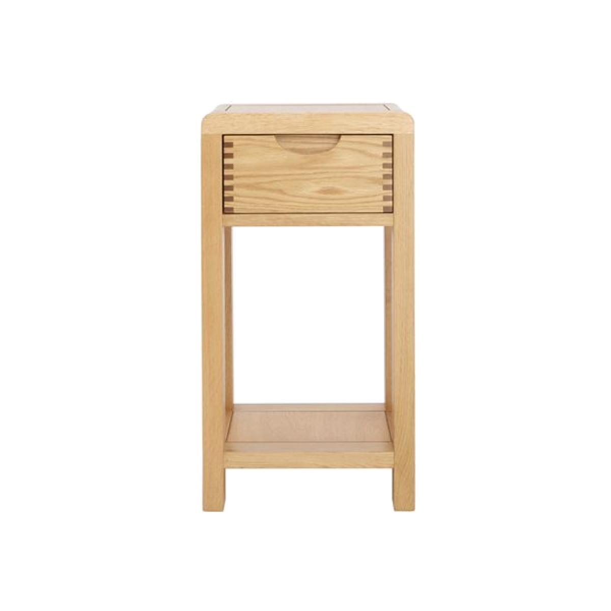 Bosco is made from solid oak and oak veneers, finished with a clear matt lacquer that shows the beauty of the oak. With a handy storage drawer and shelf beneath, this compact side table is the ideal place to place a drink or table lamp alongside your favourite chair in your living room, it would also make a great bedside table. In fact this handy table with shelf beneath will make a handy addition around the home. Compact in size, even smaller rooms will accommodate this compact side table.  Image shows this product in Clear Matt (CM) finish Dimensions W 32cm D 32cm H 60cm. Oak and Oak veneer construction Country of origin; China & Turkey. Designed by; Ercol Design Studio Wood finishes and colour samples are shown for guidance only as screen colours may vary.