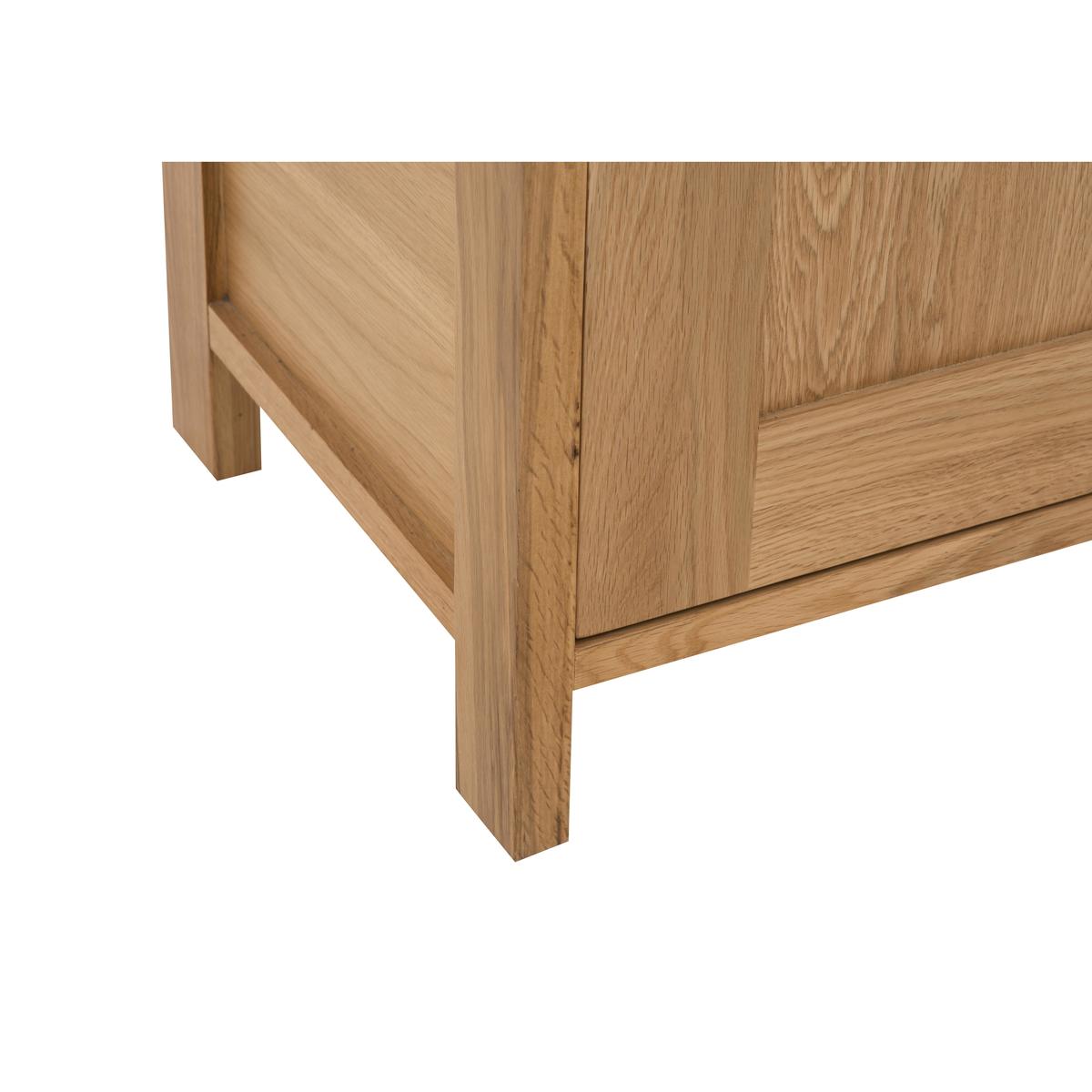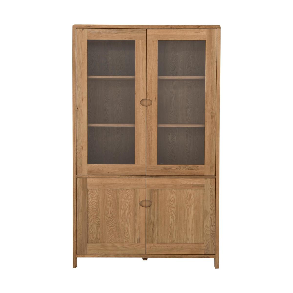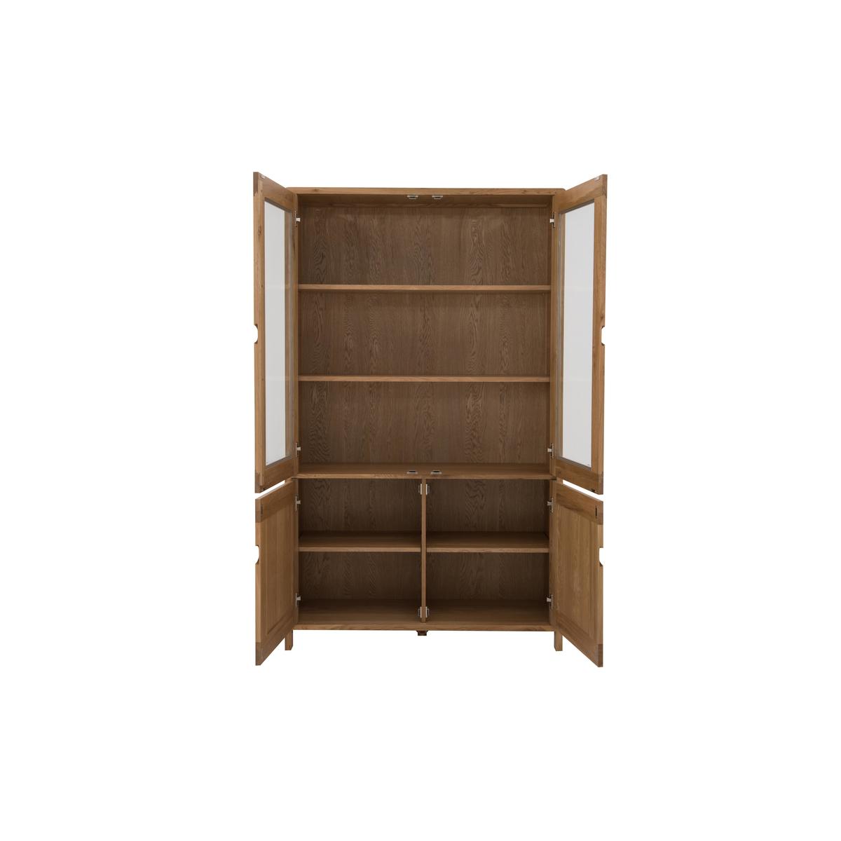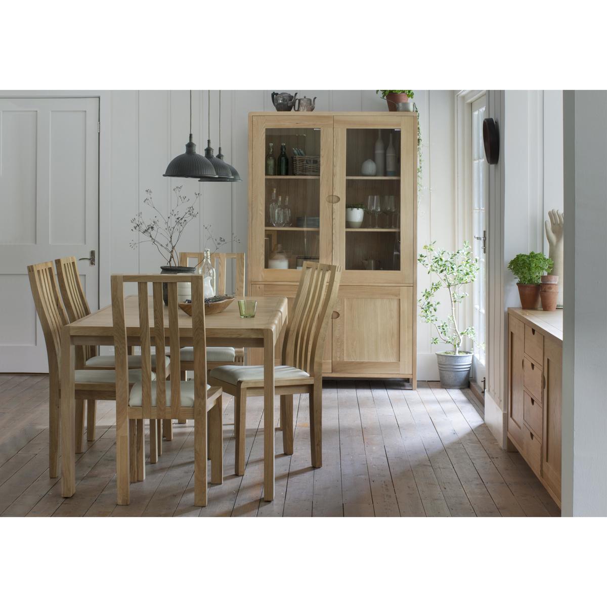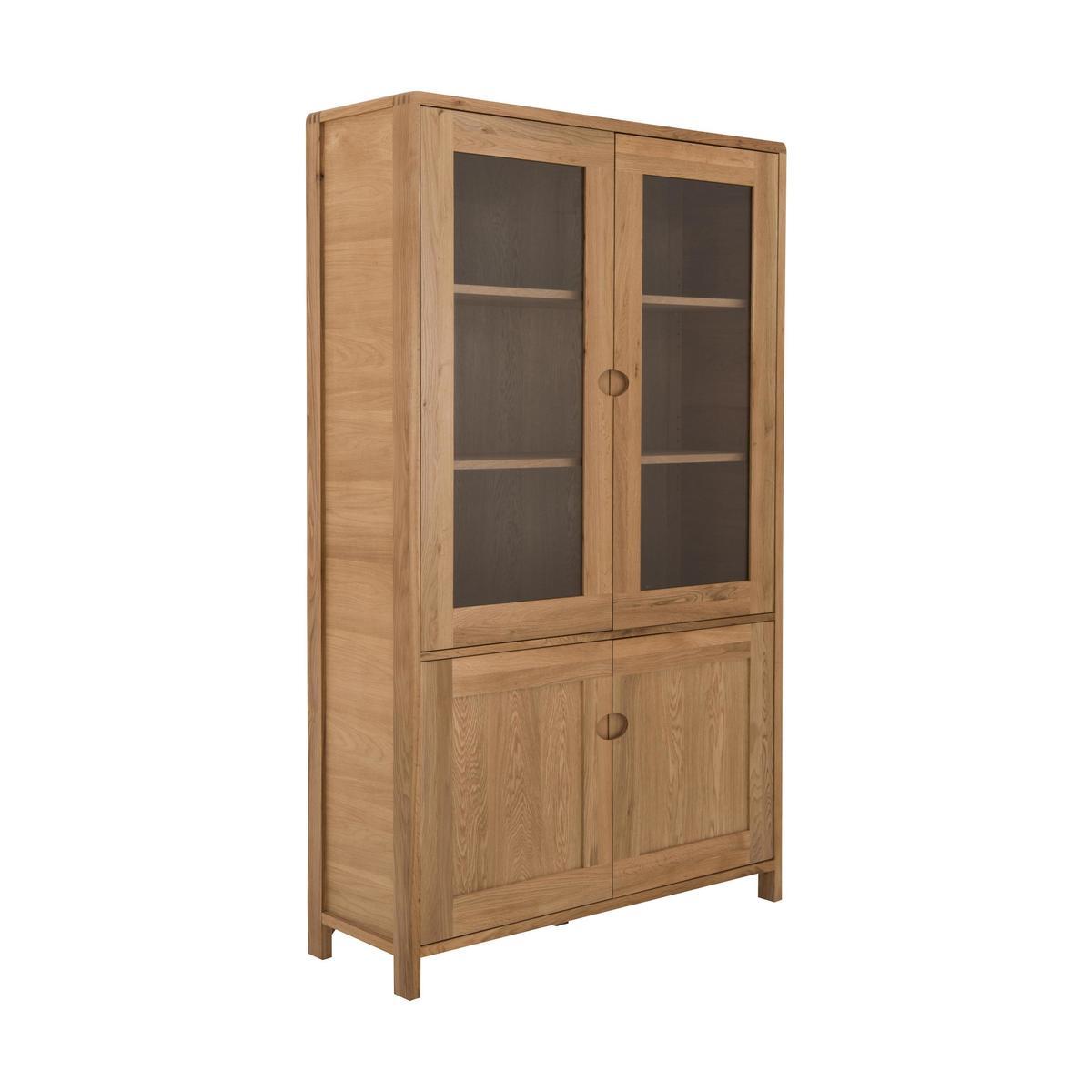 The Bosco dining collection is beautifully contemporary, with soft curves and exquisite detailing. Each solid oak piece is crafted with care and attention right down to the finger jointing and distinctive semi circular inset handles. Oak veneers with a clear matt lacquer coating show off the natural beauty of the wood. The collection includes a choice of dining tables and chairs and other occasional items. Showcasing iconic ercol style on a grand scale, the ercol Bosco display cabinet is wonderfully spacious and stylish. Crafted from solid oak and oak veneer, this piece displays classic ercol craftsmanship. From the exposed finger joints to the rounded corners to the half-moon recessed handles, every detail is exquisite. A clear matt lacquer gives it a lovely, smooth and durable finish. Large and roomy, this cabinet has a large glass-fronted cupboard with two adjustable shelves, perfect for showing off favourite objects. Below, a lower divided cupboard has an adjustable shelf on either side and is an excellent place to keep things neatly tucked away but still to hand. The ercol Bosco display cabinet is part of the ercol Bosco range of living and dining pieces. This display cabinet coordinates beautifully with the ercol Bosco wide TV unit. Did you know?. Natural wood has unique markings, with some colour variation. The colour and tone of wood improves with age.