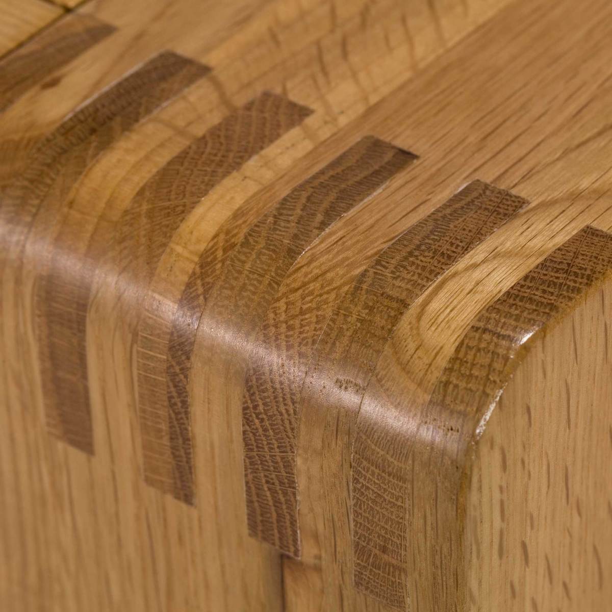 This stylish Ercol Extending dining table has flowing curves and attractive finger joints detailing Bosco is a delight to behold. Designed to meet the needs of today's living with cabinets that provide excellent storage and a choice of an extending dining table or two fixed top dining tables which can optionally be made to bespoke lengths. Choose from either a wooden back or upholstered back chair. There is even an extending bookcase to fit varying spaces and an attractive desk for home-working. Bosco is made from solid oak and oak veneers, finished with a matt lacquer that shows the beauty of the timber.