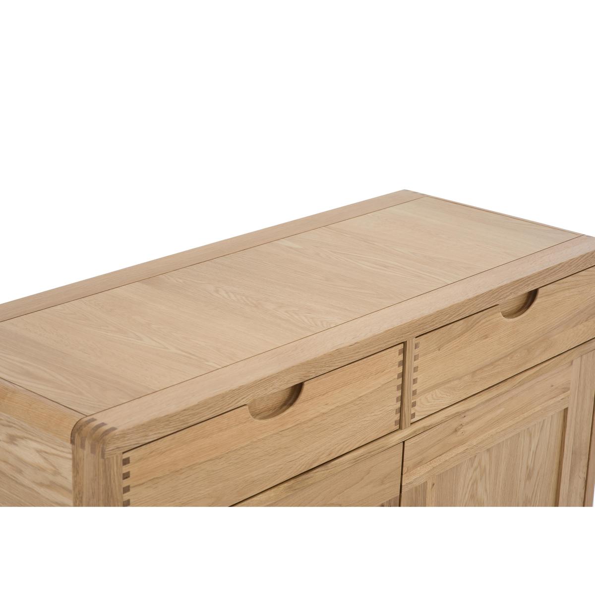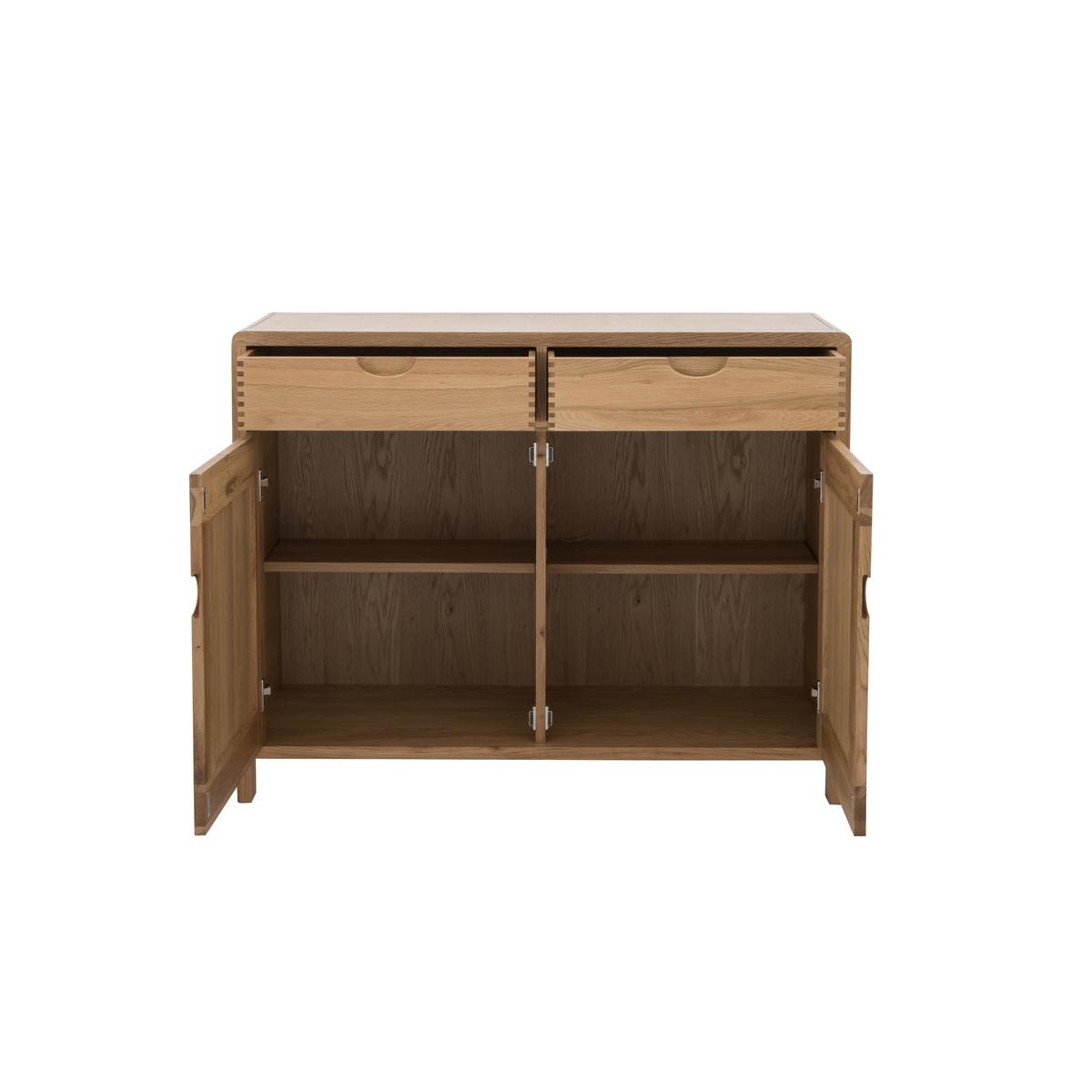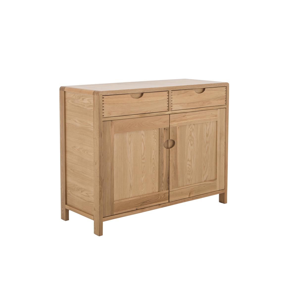 Beautifully proportioned and showcasing ercols signature design style, the ercol Bosco small sideboard provides elegant storage for a smaller dining room. Crafted from solid oak and oak veneers, this contemporary rustic piece displays ercols superb craftsmanship. From the exposed finer joints to the smooth rounded corners to the semi- circular recessed handles, every detail is carefully designed and finely wrought. Its finished with a clear matt lacquer that highlights the natural beauty of the wood. This clean- lined and compact sideboard also offers plenty of storage space. Theres a roomy two- door cupboard with adjustable shelf and two drawers. The elegant ercol Bosco small sideboard is part of the ercol Bosco dining collection. Choose from a wide selection of dining room tables, dining chairs and sideboards as well as living room pieces that include storage cabinets and occasional tables. Did you know? Natural wood has unique markings, with some colour variation. The colour and tone of wood improves with age. WARNING! Furniture can tip over unexpectedly and cause injury. This item must be fixed to a wall using the anti- tip kit provided. Be sure to use the correct wall fixings suitable for the walls in your home. Furniture Village is not able to fix anti- tip devices for you. Seek professional advice if you are unsure.