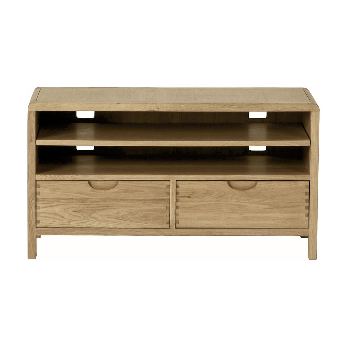 Its the classic ercol craftsmanship that youll first notice about the ercol Bosco TV unit, a perfect example of contemporary rustic furniture Like all ercol pieces, this thoughtfully- designed TV unit is beautifully made. Youll appreciate the fine solid oak and oak veneer construction with exposed finger joints, smooth rounded corners and clean lines. Finished with a clear matt lacquer, this TV unit showcases the beauty of the natural material from which it is crafted. Its also very functional, with plenty of open and closed storage space for all your media components. There are two large shelves with cable cut- outs at the back, and two useful drawers with attractive semi- circular recessed handles. The ercol Bosco TV unit is part of the gorgeous ercol Bosco range of living room storage pieces and dining room furniture. If your living room is on the larger side, consider the ercol Bosco wide TV unit. Did you know? Natural wood has unique markings, with some colour variation. The colour and tone of wood improves with age.