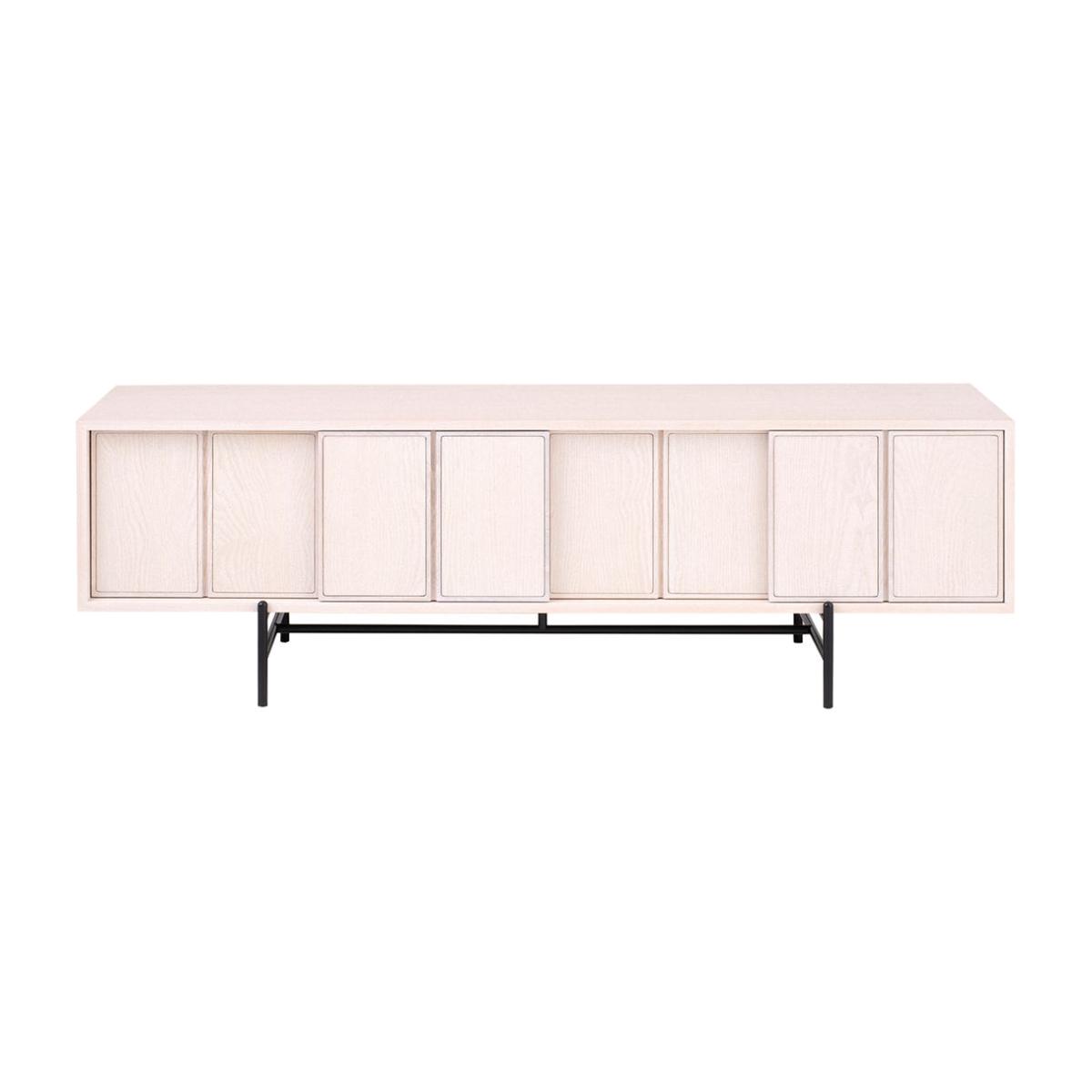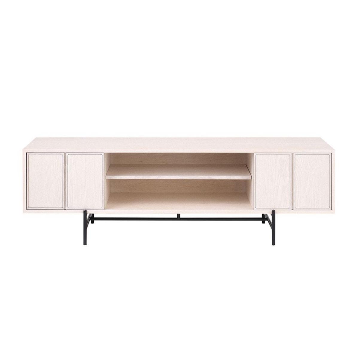 The Canvas Media Unit features three cupboards, all with an adjustable shelf the centre cupboard has a cable managing hole perfect for storing your digital boxes out of sight. Featuring Signature sliding doors from the Canvas collection and black metal legs give a modern feel to the Media Unit.