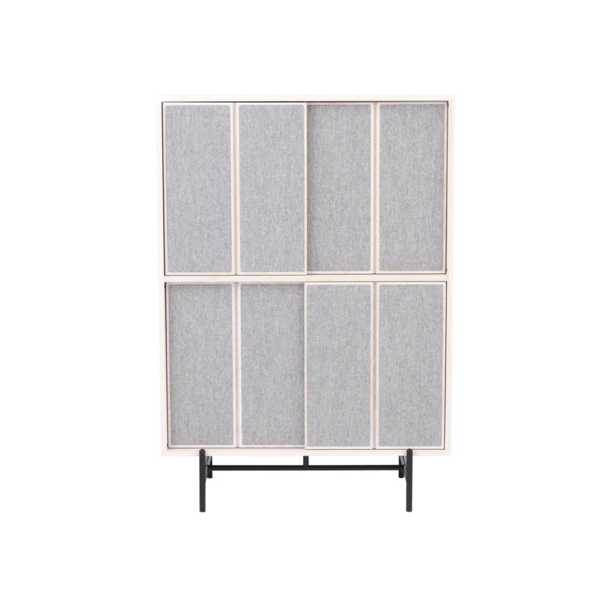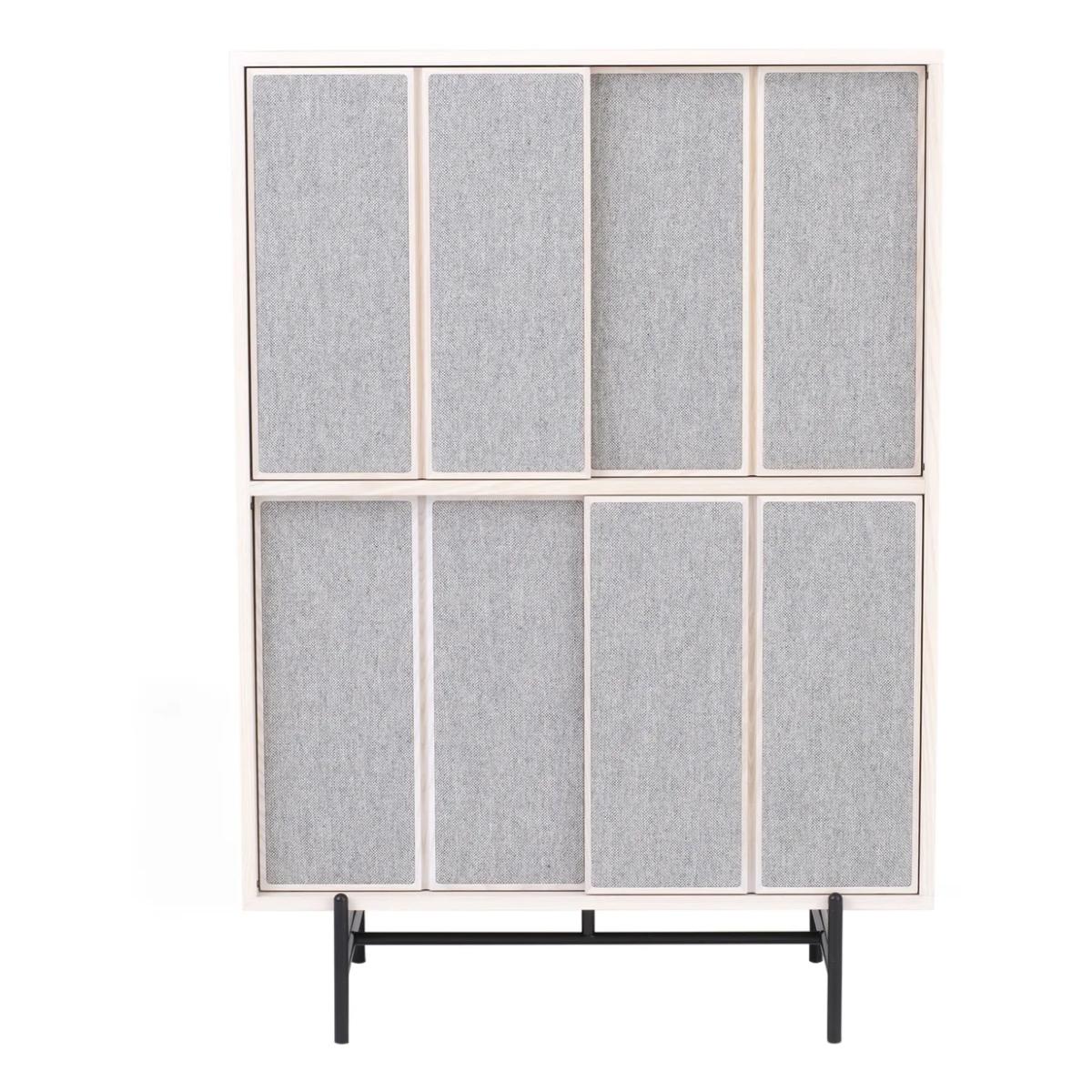 The Upholstered Canvas Tall Cabinet from ercol provides generous storage with its four spacious cupboards, each fitted with adjustable shelves to suit your needs. A blend of traditional craftsmanship and modern styling, it features classic dovetail joints paired with sleek black metal legs—signature elements of the Canvas collection. Crafted from solid ash, the cabinet can be finished in your choice of ercol ash finishes. For a softer, more textured aesthetic, the doors can also be upholstered in a selection of fabrics from the ercol collection. FEATURES: Constructed with Solid Ash & Metal legs Several wood finishes available Arrives fully assembled Country of Origin - UK Image shown in Whitened (NM) wood finish and the E811 fabric DIMENSIONS: Width: 94cm Depth: 49cm Height: 134cm Weight: 62kg Please note: All screens vary in colour reproduction and whilst every effort has been made to display the colour as accurately as possible it is for guidance only. Wood is a natural material, consequently the grain pattern will vary from piece to piece. Before ordering, we recommend viewing the fabric swatches and wood finishes in store and ordering samples to view at home.