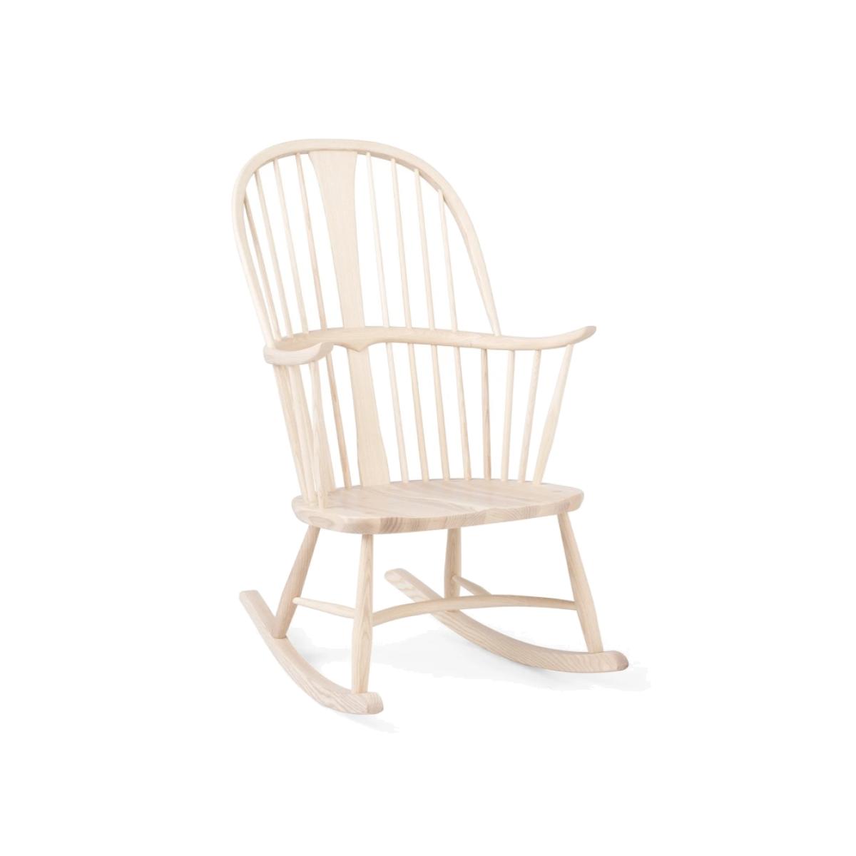 The Ercol Chairmakers Rocking Chair part of the Windsor range features a traditional spindle backrest with eight, finely tuned spindles and durable, solid wooden legs that grant the chair a range of movement, allowing users to lean back and enjoy the simple pleasure of sitting in a rocking chair. In 1956 Lucian Ercolani designed the Chairmakers Rocker, an example of classic Windsor craftsmanship. Proudly manufactured in the UK using solid ash, the rocker is offered in all ercol ash wood finishes and paints. Features Solid Ash Choice of finishes. Fully assembled. Shown here in Clear Matt Dimensions Width: 60cm Depth: 76cm Height: 107cm Seat Height 40cm Seat Depth 44cm Seat Width Arm To Arm 54cm Max Loading Weight 110kg