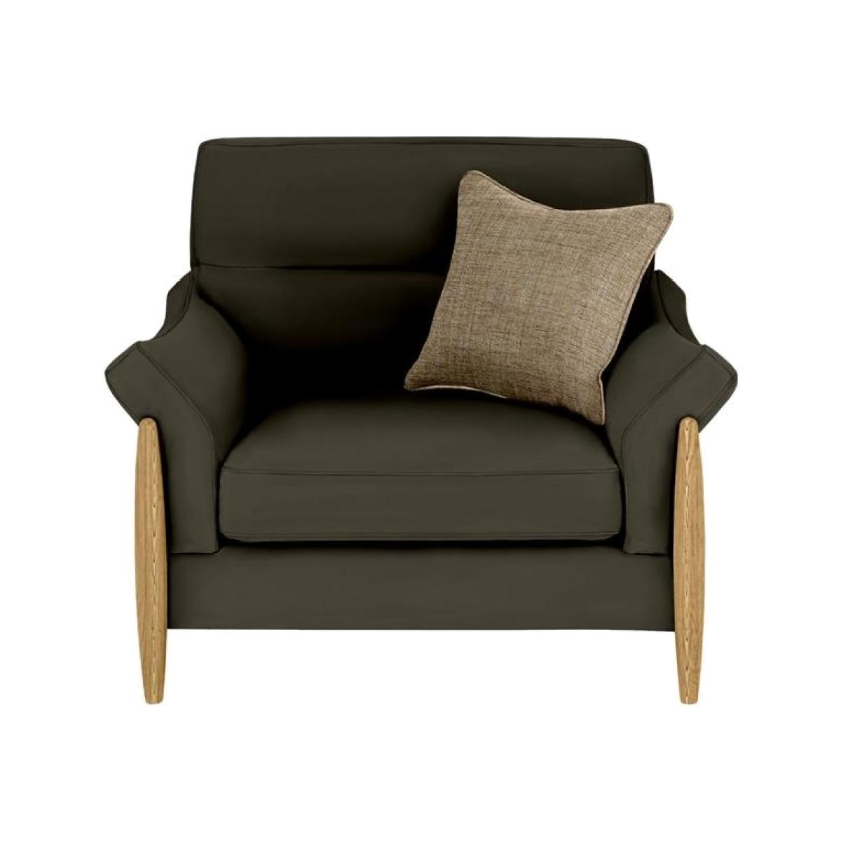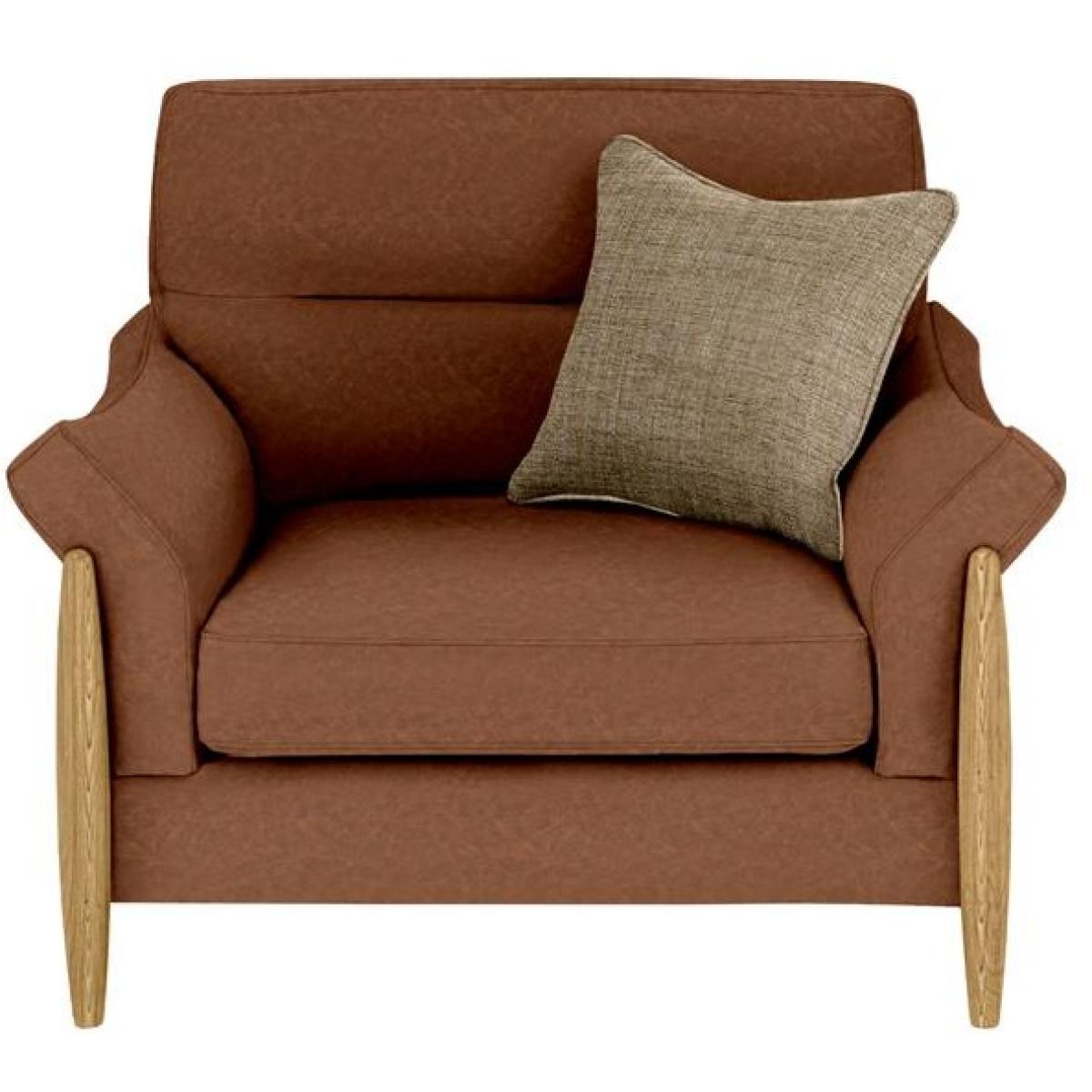 The Ercol Clara Leather Snuggler offers comfort with style, the solid oak legs frame the snuggler, which along with the out-turned arms, make it a perfect seat to rest and relax in to. The back cushion has an attractive, detailed stitching on it and along with the seat cushion, they are affixed with velcro onto the frame to reduce any movement. The oak legs are available in two finishes, and you can choose the fabric from our Edit and Universal collections, giving you ample choice to suit your décor. Features: Solid oak frame with a soft, natural finish Upholstered in premium, durable leather (customisable) Supportive foam seat and back cushions for lasting comfort Designed with relaxed ergonomics in mind Handcrafted by Ercol – trusted British design since 1920 Fully Assembled Dimensions: Height: 91cm Width: 132cm Depth: 103cm Seat Height 48cm Seat Depth 60cm Seat Width 86cm Arm Height 63cm All screens vary in colour reproduction and whilst every effort has been made to display the colour as accurately as possible it is for guidance only.