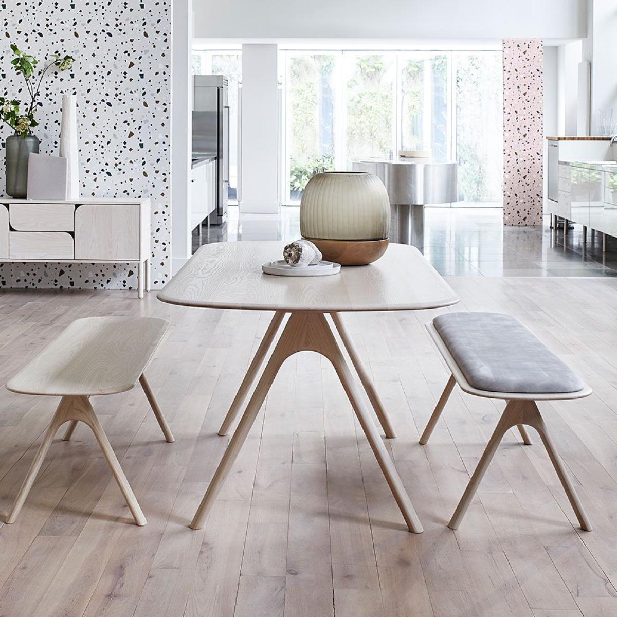 A new addition to the Corso collection is a larger sized Corso dining table, perfect for open plan living or any modern home. Crafted from tactile solid ash timber the surface displays the natural beauty of the woods grain to full effect. Smooth chamfered curves add to the clean lined profile this elegant design was inspired by the Originals plank table. Team with the Corso bench or Lara chair this table is perfect for regular or daily use. Available in the full range of ash finishes along with NM lightened or DA darkened finishes which truly displays the natural beauty of the solid ash grain.