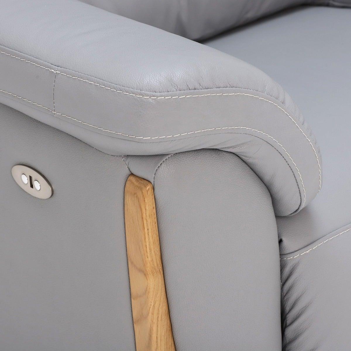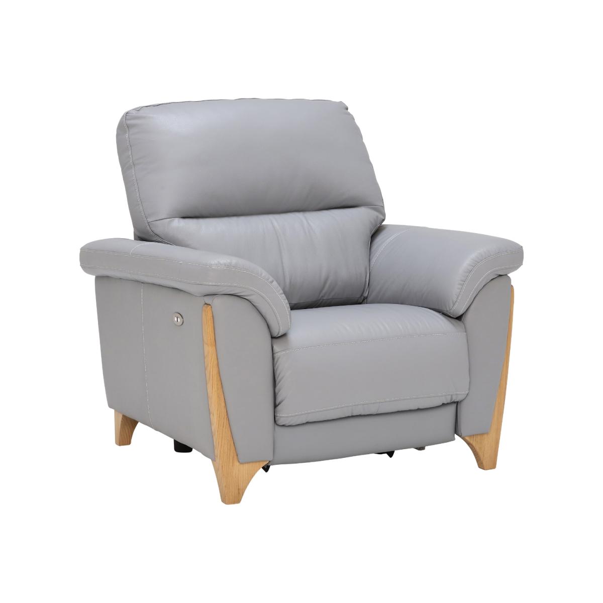I’m a fan of the Enna recliner for its mix of soft leather upholstery and pale oak legs - it feels both comfortable and clean-lined. The smooth grey leather and simple silhouette suit contemporary, Scandi or muted transitional schemes, and the built-in recline makes it a practical choice for a reading corner or snug seating area. To style it, start with a neutral or sage-toned rug and a low coffee table in oak or black metal. Add texture with a chunky wool throw draped casually over one arm and a linen cushion in a complementary shade. A slim, tripod floor lamp beside it will highlight the recline function while keeping the overall look light and inviting.