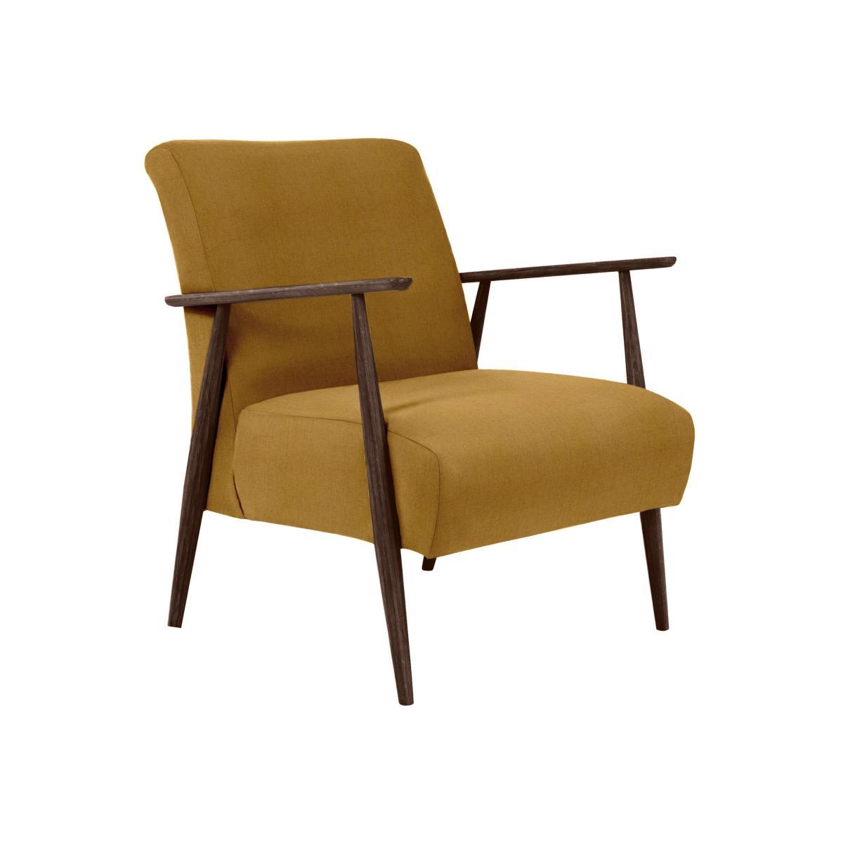 Here’s the perfect mid-century style armchair, made modern by master furniture crafters Ercol. Its sleek oak frame and deep cushioning effortlessly bring home cool retro style. Why you’ll love it. Retro armchair fits perfectly in any room. Classic mid-century style by Ercol. Sumptuous cushioning framed by distinctive retro lines. Solid oak chair arms and legs. Gently angled back and deep wide seat. Choice of finish – clear matt lacquer or dark stain. In a selection of sophisticated Ercol fabrics. Handcrafted in Britain. What you need to know. Foam and fibre back cushion. Foam topped with fibre seat cushion. Webbed back and seat support. Some fabrics can show wear on areas of more use or in direct sunlight. Please read our upholstery care guide for more advice.