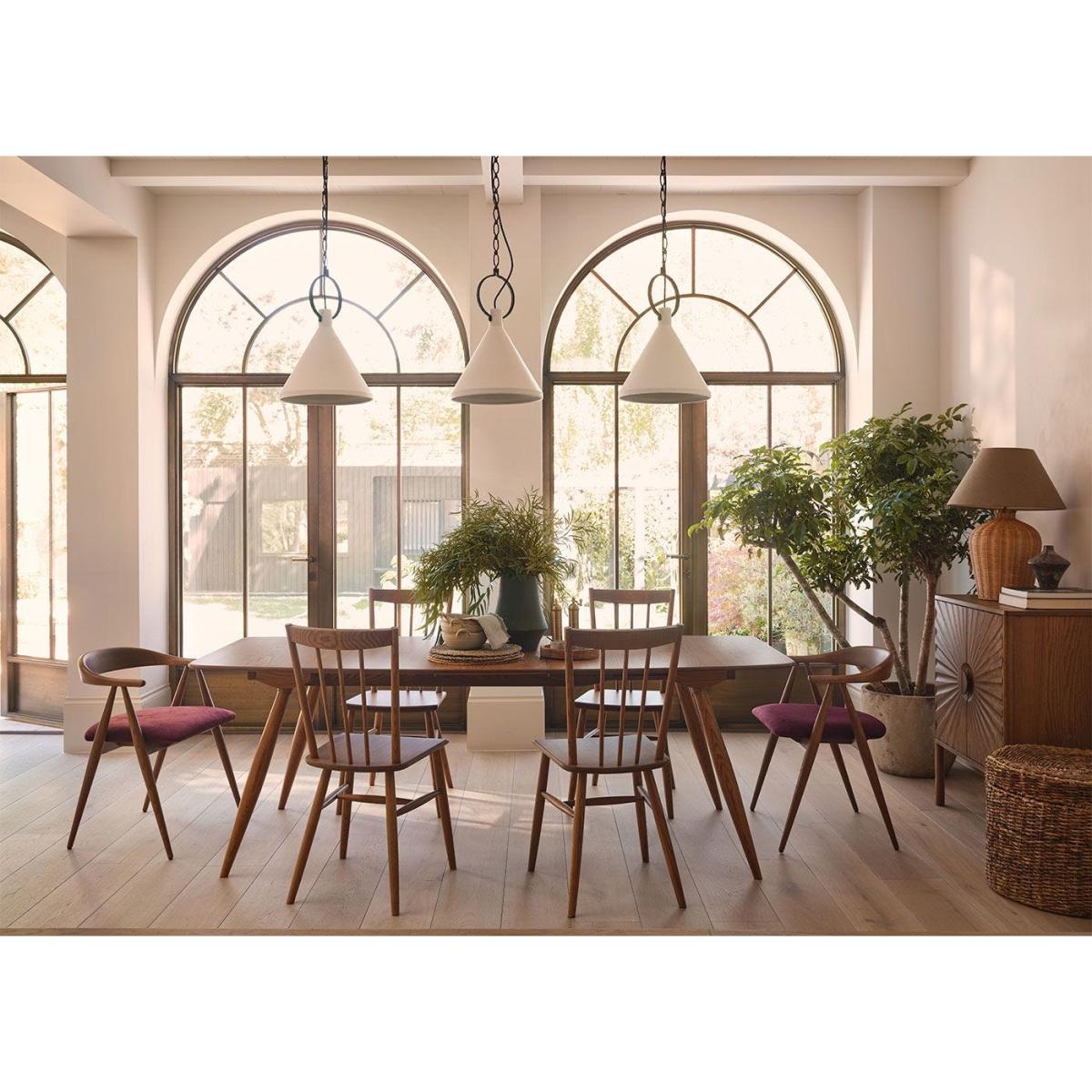 I love this table for its clean, mid-century modern aesthetic that pairs well with both contemporary and traditional interiors. It’s particularly versatile because of its extendable feature, making it perfect for hosting larger gatherings without sacrificing style in daily use. The natural wood finish lends itself well to Scandi, minimalist, or rustic schemes, and it can be styled with a mix of modern chairs for a curated look or paired with upholstered seating for added comfort. Practical styling tips include keeping the tabletop clutter-free to highlight its elegant form, and using a simple runner or placemats to add texture and colour without overwhelming its timeless design. Overall, it’s a functional statement piece that can adapt to various interiors while remaining a robust focal point for your dining space.