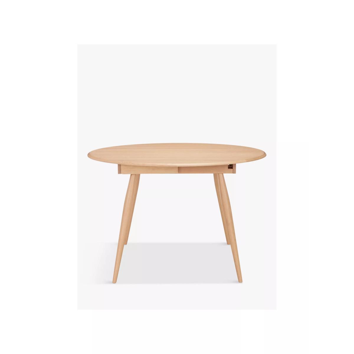 Shalstone: an exclusive range of living and dining furniture that offers a contemporary reinterpretation of ercol's original designs. With each piece of furniture made from smooth pale oak, it's the beautifully curved shapes and spindles that characterise this range. Drawn from original 1950s designs, this dining table showcases exquisite craftsmanship and quality. It's built using the dovetail and box joint method for durability and it's been coated in a protective matt lacquer. It can seat up to six people when it's fully extended and the extension leaf can be stored neatly inside the table when you don't need it. We like the soft-edge, gently curved finish of the surface and the spindle-shaped tapered legs for that cool Scandi edge. How to care for your new furniture... As wood is a natural material, every piece of ercol furniture has its own unique difference. You can expect varying grain patterns, colours and shading depending on how the original tree grew. Grain patterns also depend on how the wood is cut. When oak is cut across the grain for example, medullary rays occur which creates growth rings and flecks - this is a sign of quality. All wood will change colour and mellow over time, so use protective mats when placing items on the surface Try to avoid placing your furniture in direct sunlight or near a heat source, as wood expands and contracts with temperature and humidity changes and gaps or cracks along joints can appear Dust your new furniture regularly with a dry cloth and aim to mop up spillages immediately Matt or painted furniture should be wiped occasionally with a soft, slightly damp cloth and diluted mild detergent, then dried with a lint cloth Satin-finished furniture should be polished twice a year using natural bees wax Do not use spray polishes or abrasive cleaning materials as these can damage the surface of the protective lacquer Want to see it first? You may want to see and get a feel for the furniture in one of our shops before ordering. We'll be able to tell you where the range you'd like to view is on display.