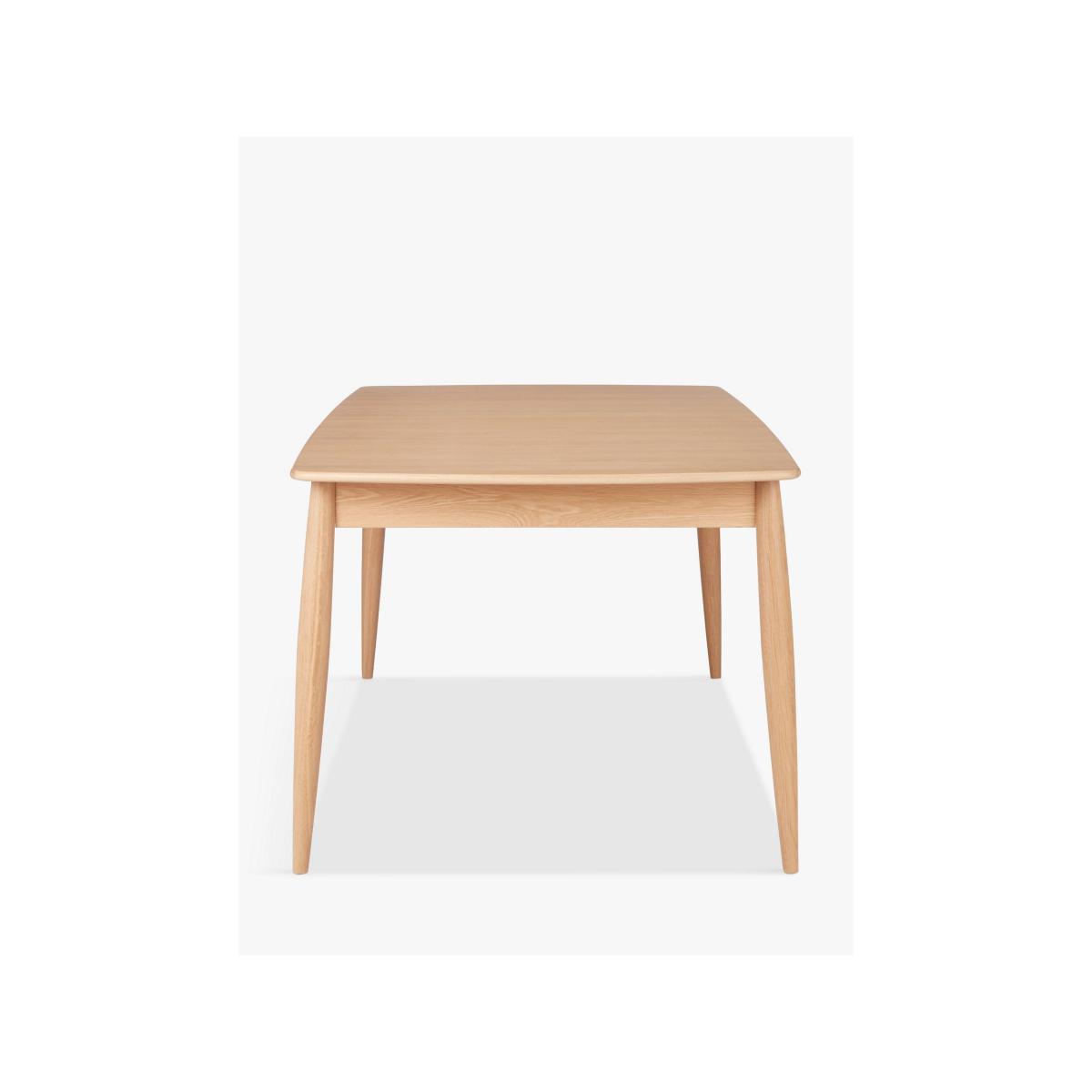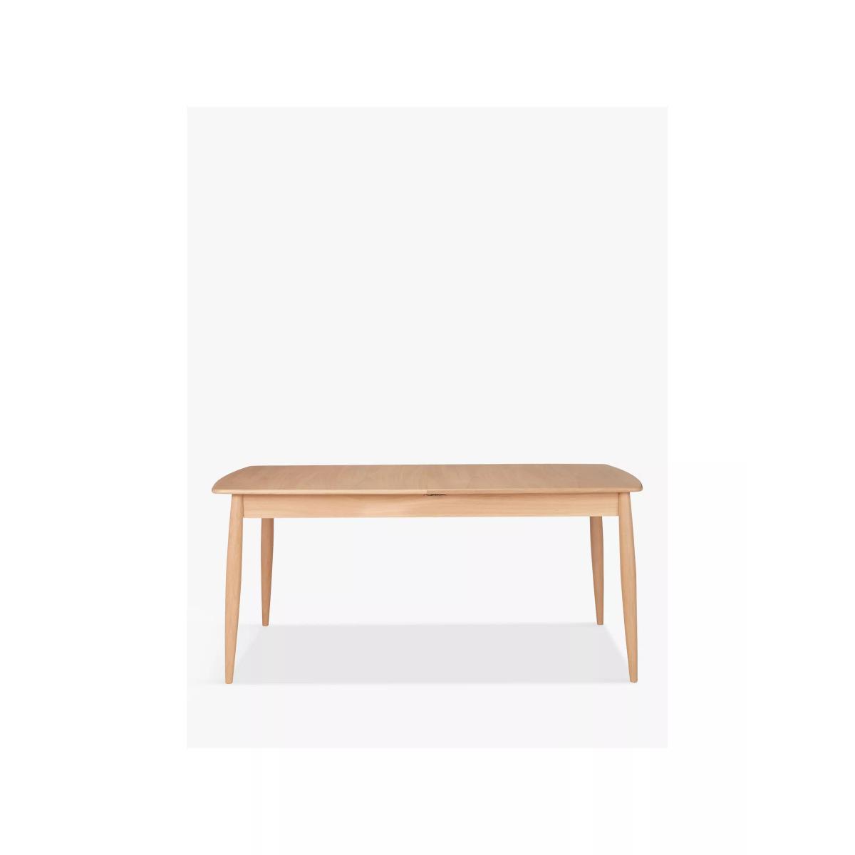 Shalstone: an exclusive range of living and dining furniture that offers a contemporary reinterpretation of ercol's original designs. With each piece of furniture made from smooth pale oak, it's the beautifully curved shapes and spindles that characterise this range. Drawn from original 1950s designs, this dining table showcases exquisite craftsmanship and quality. It's built using the dovetail and box joint method for durability and it's been coated in a protective matt lacquer. It can seat up to eight people when it's fully extended and the butterfly extension leaves can be stored neatly inside the table when you don't need them. We like the soft-edge, gently curved finish of the surface and the spindle-shaped tapered legs for that cool Scandi edge. How to care for your new furniture... As wood is a natural material, every piece of ercol furniture has its own unique difference. You can expect varying grain patterns, colours and shading depending on how the original tree grew. Grain patterns also depend on how the wood is cut. When oak is cut across the grain for example, medullary rays occur which creates growth rings and flecks - this is a sign of quality. All wood will change colour and mellow over time, so use protective mats when placing items on the surface Try to avoid placing your furniture in direct sunlight or near a heat source, as wood expands and contracts with temperature and humidity changes and gaps or cracks along joints can appear Dust your new furniture regularly with a dry cloth and aim to mop up spillages immediately Matt or painted furniture should be wiped occasionally with a soft, slightly damp cloth and diluted mild detergent, then dried with a lint cloth Satin-finished furniture should be polished twice a year using natural bees wax Do not use spray polishes or abrasive cleaning materials as these can damage the surface of the protective lacquer Want to see it first? You may want to see and get a feel for the furniture in one of our shops before ordering. We'll be able to tell you where the range you'd like to view is on display.