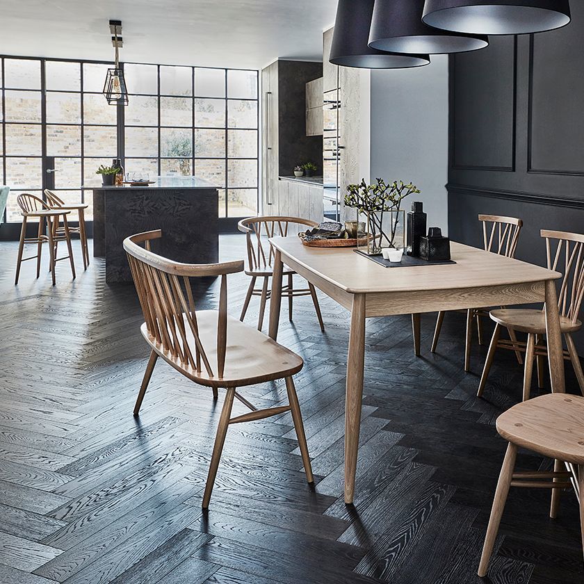 The shape and features of the ercol Shalstone living and dining collection echo ercol’s desirable original furniture designs, reinterpreted exclusively for John Lewis. Focusing on this heritage, the brand has created a range with elegant tapering legs, oak spindles and deep functional storage. This pared-down aesthetic has been brought up to date by constructing each piece in contemporary pale oak, with a modern matt finish.;This exquisite extending dining table is made from solid oak and oak veneers for visual appeal and durability. It has tapered legs and a curved aesthetic for a subtle, decorative look, while the 45cm butterfly leaf which stores neatly inside the table provides space for extra guests at dinner. Pair this table with the Shalstone chairs or bench to give your home a unique and contemporary feel.