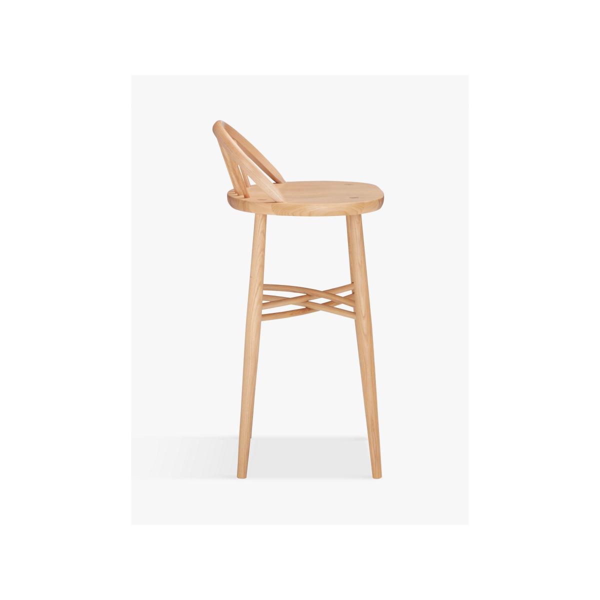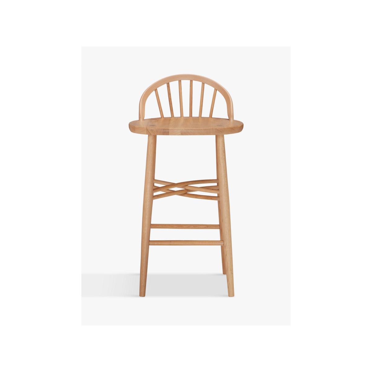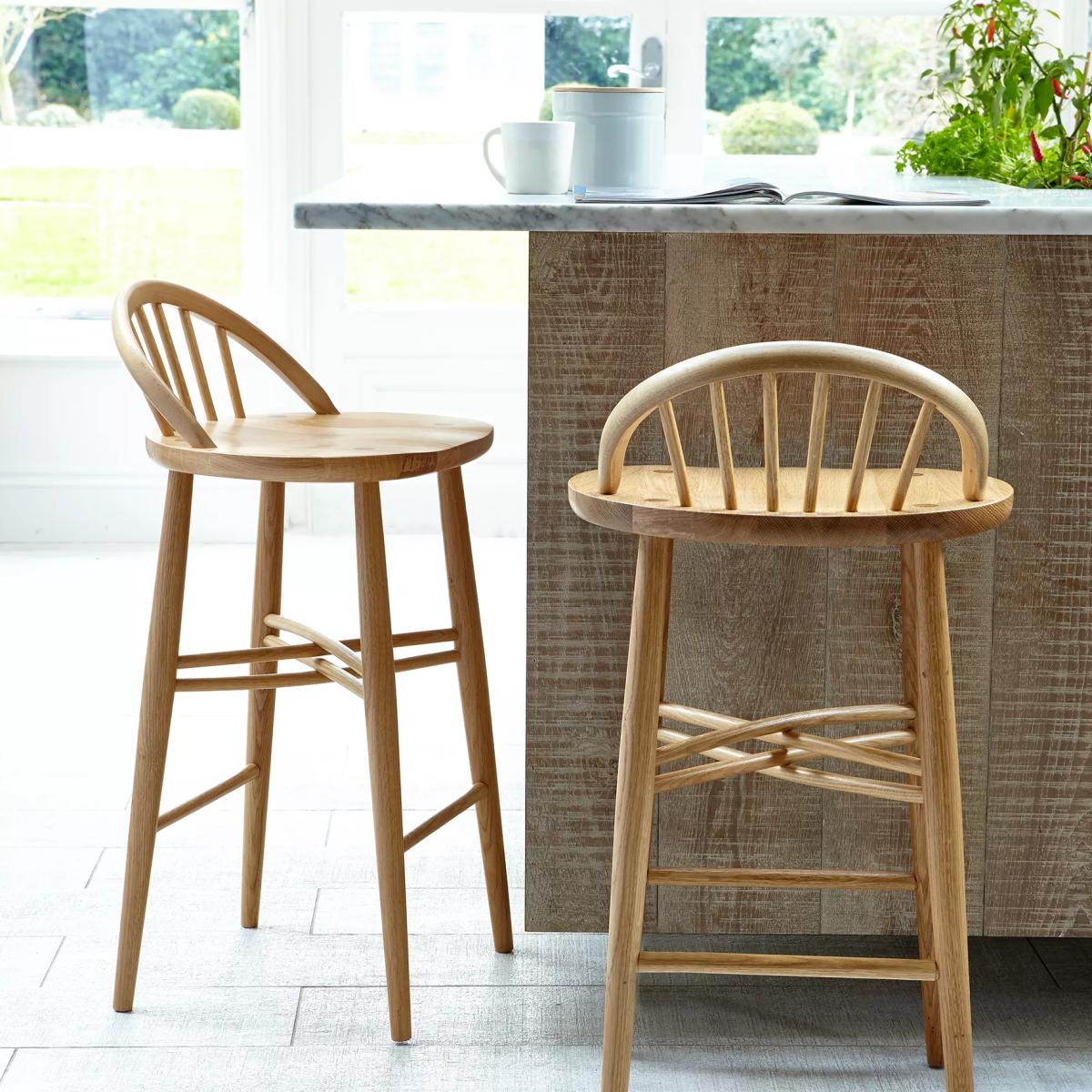 Shalstone: an exclusive range of living and dining furniture that offers a contemporary reinterpretation of ercol's original designs. With each piece of furniture made from smooth pale oak, it's the beautifully curved shapes and spindles that characterise this range. Drawn from designs found in ercol's archives, this bar stool showcases exquisite craftsmanship and quality. It's built using the dovetail and box joint method for durability and it's been coated in a protective matt lacquer. Elegantly curved, with spindle rods forming the short backrest and sleek turned legs, this bar stool brings subtle Scandi simplicity to your breakfast bar or worktop. How to care for your new furniture... As wood is a natural material, every piece of ercol furniture has its own unique difference. You can expect varying grain patterns, colours and shading depending on how the original tree grew. Grain patterns also depend on how the wood is cut. When oak is cut across the grain for example, medullary rays occur which creates growth rings and flecks - this is a sign of quality. All wood will change colour and mellow over time, so use protective mats when placing items on the surface Try to avoid placing your furniture in direct sunlight or near a heat source, as wood expands and contracts with temperature and humidity changes and gaps or cracks along joints can appear Dust your new furniture regularly with a dry cloth and aim to mop up spillages immediately Matt or painted furniture should be wiped occasionally with a soft, slightly damp cloth and diluted mild detergent, then dried with a lint cloth Satin-finished furniture should be polished twice a year using natural bees wax Do not use spray polishes or abrasive cleaning materials as these can damage the surface of the protective lacquer Want to see it first? You may want to see and get a feel for the furniture in one of our shops before ordering. We'll be able to tell you where the range you'd like to view is on display.