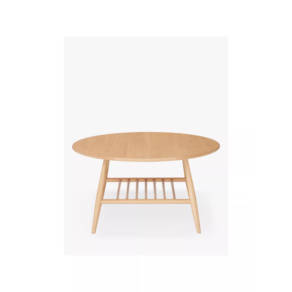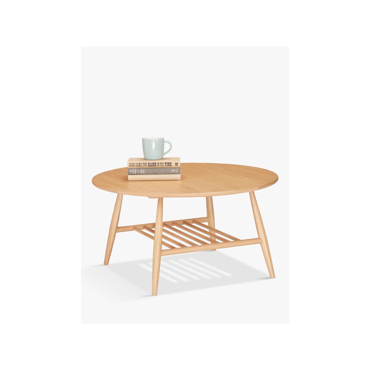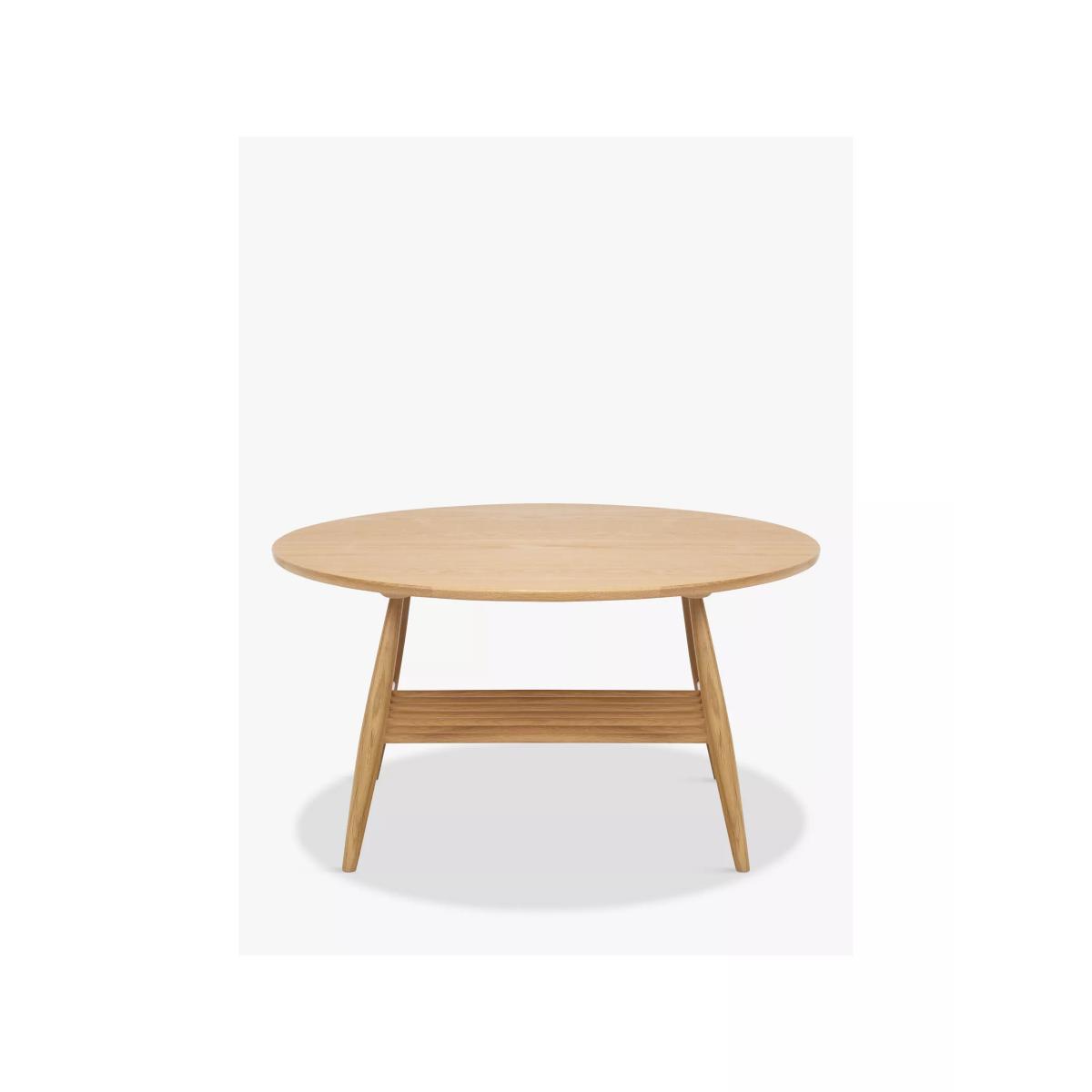 The shape and features of the ercol Shalstone living and dining range highlight ercol’s original furniture designs, reinterpreted exclusively for John Lewis. Showcasing elegant tapered legs, oak spindles and functional storage spaces, each piece is constructed from smooth pale oak in a matt lacquer finish. Made from high-quality solid oak and veneers, this sturdy coffee table showcases smooth edges and splayed legs, offering a timeless centrepiece for your living room. A convenient lower shelf is ideal for magazines and books and its distinctive spindle construction highlights the appealing natural Shalstone aesthetic. Finished in lacquer for durability, this coffee table is versatile for both contemporary and more traditional interior decor. Want to see it first? You may want to see and get a feel for the furniture in one of our shops before ordering. We'll be able to tell you where the range you'd like to view is on display.