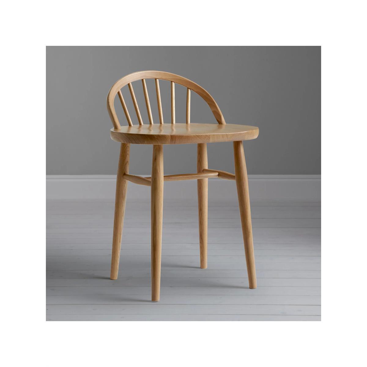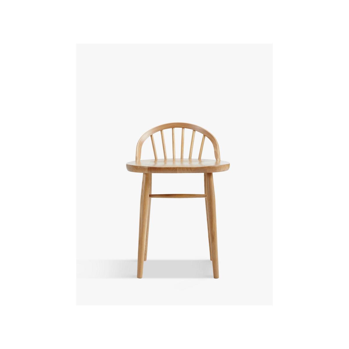 The shape and features of the ercol Shalstone living and dining range highlight ercol's original furniture designs, reinterpreted exclusively for John Lewis. Showcasing elegant tapered legs, oak spindles and functional storage spaces, each piece is constructed from smooth pale oak and veneers in a matt finish. This elegant dressing table stool is designed with dovetail and finger joints to ensure its strength and durability. Its carefully curved backrest is accented with distinctive spindle detailing, while its lacquered finish highlights the natural grain of its solid, wooden construction. Supported by turned legs that taper subtly to the ground, this chair can be teamed with the matching dressing table, a timeless design for your bedroom. Want to see it first? You may want to see and get a feel for the furniture in one of our shops before ordering. We'll be able to tell you where the range you'd like to view is on display.