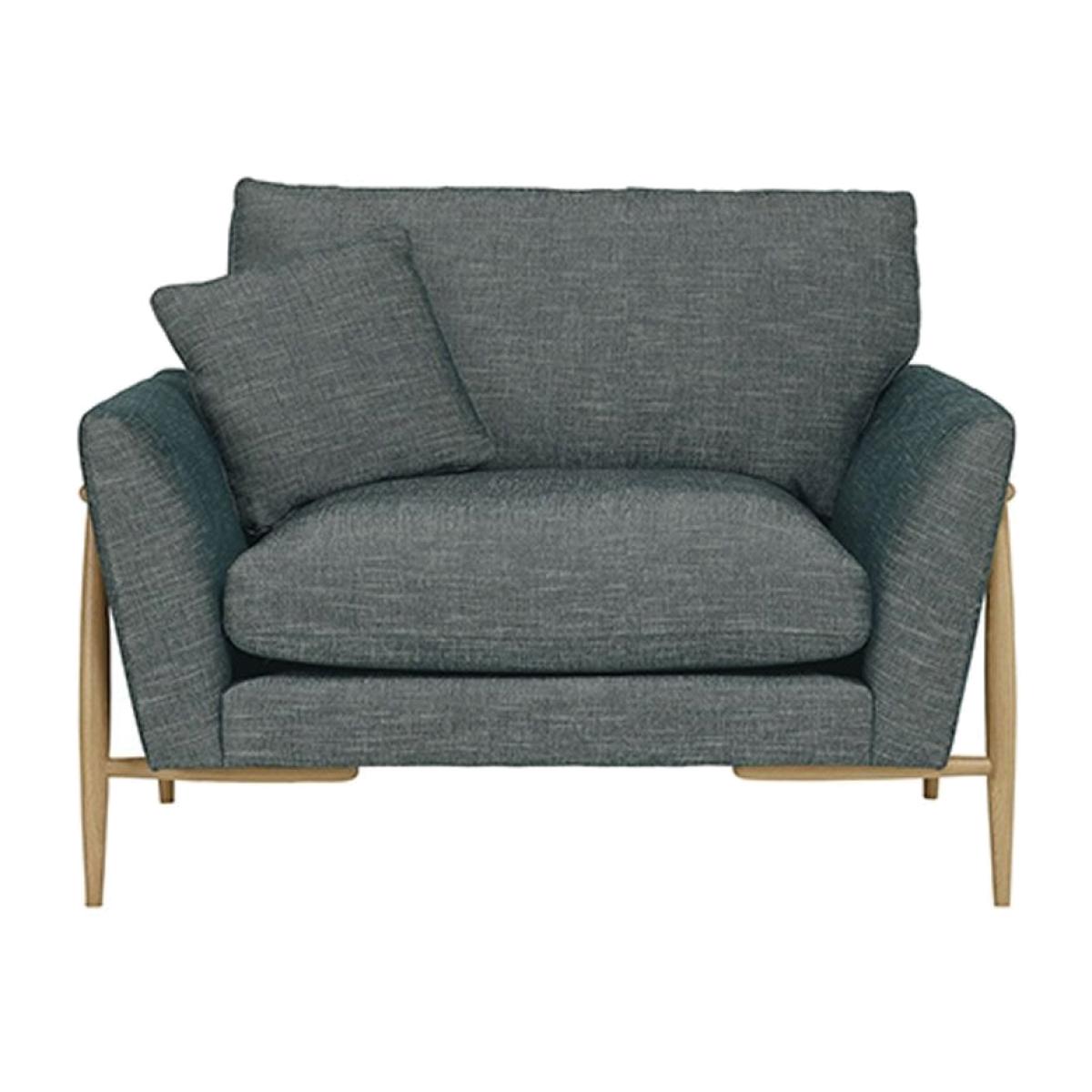 Your new favourite place to sit, the Ercol Forli armchair combines luxe contemporary fabrics with Ercols signature scandinavian inspired design. Made up of a slim profile shape and slender curved, solid oak turned legs which form part of the chairs exterior frame and is available in a clear matt or a dark wood finish. Team with the rest of the Ercol Forli collection to complete your sofa suite.