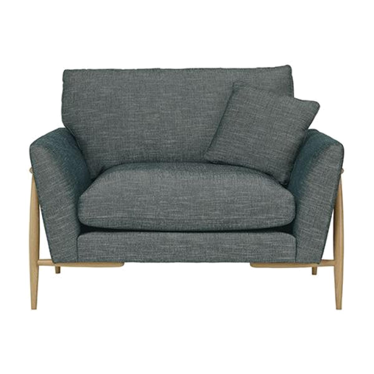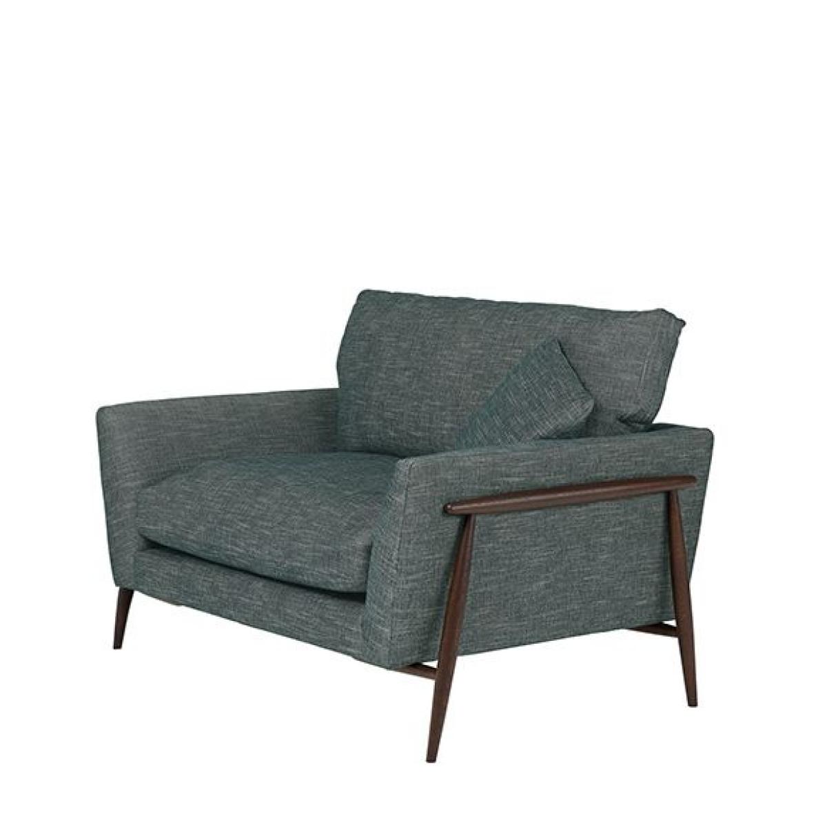 The Forli chair is designed with the compact home environment in mind. Slim profiles, contemporary textured and plush fabrics create a dynamic backdrop for the beautifully turned solid oak leg details, available in a natural or dark wood finish for the legs. W 98 x D 92 x H 85cm. Seat Height 48cm Solid Oak legs Foam seat interior Back cushions only are reversible Arm height to wood 56cm, to arm cushion 65cm Partial assembly required (legs) One scatter cushion supplied *Please note, We've tried to reproduce this product as best as we can but because it's a made to order design, the image acts as a guide and may not be representative of the finished item. Seams, pattern placement, exact colouring and texture of the fabric can vary slightly. Before ordering, we recommend you view any fabrics in situ. To facilitate this, samples are available to order online. Wood finishes and colour samples are shown for guidance only as screen colours may vary. Wood is a natural material and varies in colour, grain and structure.