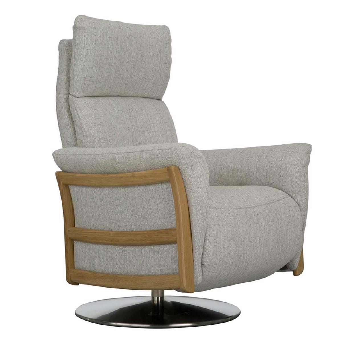 Design. This contemporary recliner chair has been expertly crafted to include beautiful wooden detailing and interest that is distinctively Ercol. The Ginosa fabric recliner comes equipped with integral head and footrests that enable you to recline at just the right angle offering a relaxing environment to have a little breather after a busy day. This is perfect for use as a lounge or even as a luxurious office chair, its beautiful grey tones would suit many modern interiors, with its practical swivel base allowing you to move around and work freely.