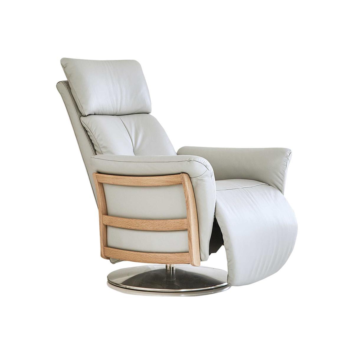 Design. The Ginosa leather recliner has a beautiful contemporary take on a classic design, a perfect addition for your living area or even home office with its handy swivel base and aesthetically pleasing, neutral colouring. Thoughtfully designed for your comfort, it has integral head and footrests that enable you to recline at just the right angle, helping you stay comfortable for longer periods of time. Finished with stunning side arm detailing that has been expertly crafted to provide interest that is distinctively Ercol. This is a chair that is perfect for relaxing.